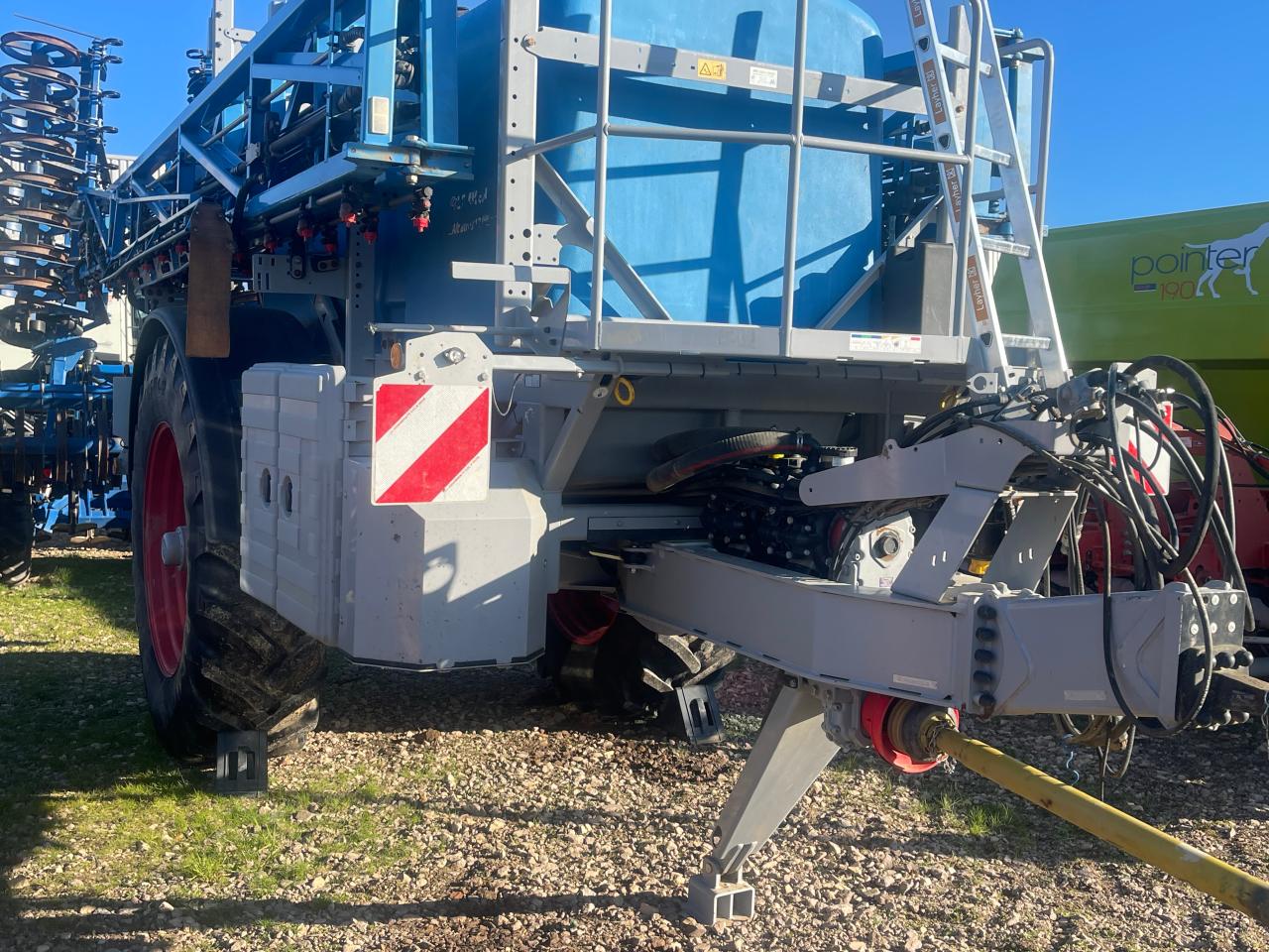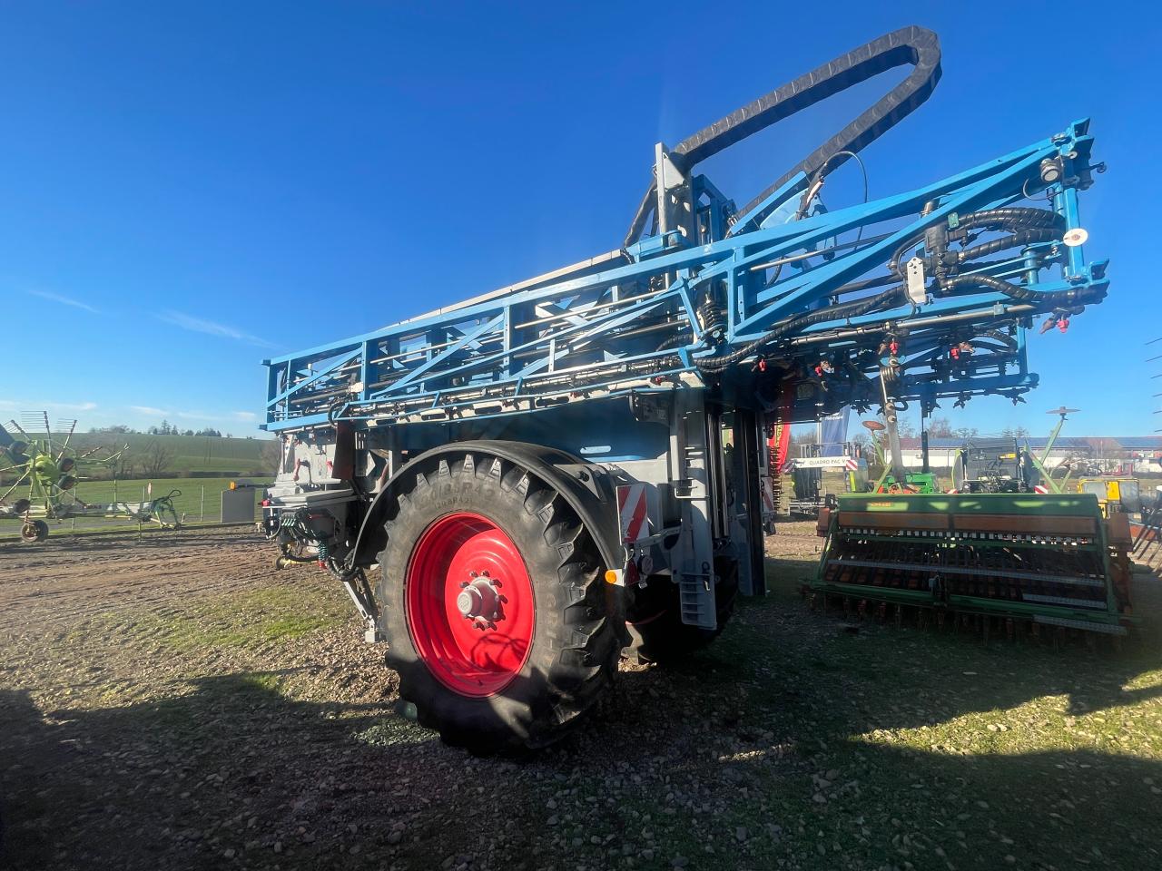 Stützfuß / -rad, Einspülschleuse, Einachser, ISOBUS, einseitige Klappung R/L, automatische Gestängeführung, Randdüsenschaltung, automatische GPS Teilbreitenschaltung (Section Control), Dreifachdüsenkörper, Staufach, Achsfederung, Obenanhängung (Öse), Schmutzfänger / Kotflügel