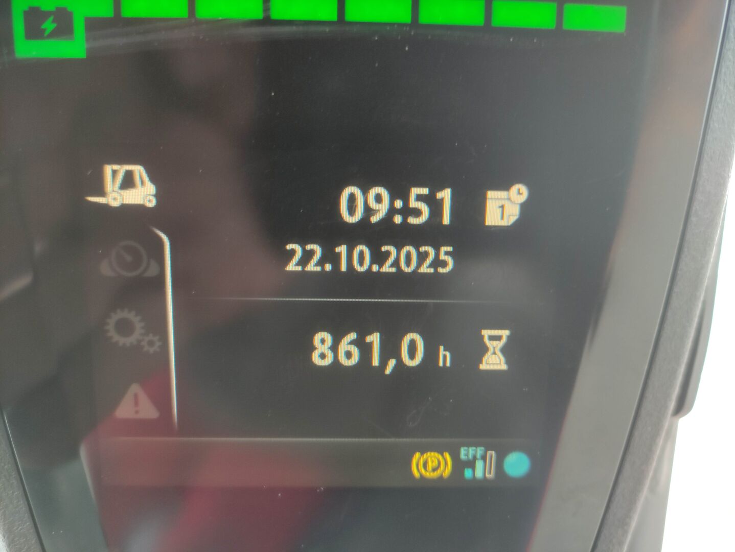 Ein elektronischer Antrieb sorgt für eine leise, lokal emissionsfreie Fortbewegung. Die Motoren gelten als durchzugsstärker als klassische Verbrenner. Die Nutzungsdauer liegt bei 861 Stunden . Der Masttyp ist Triplex. Dieses Fahrzeug ist kein Spezialgerät. Die Tragkraft beträgt 1600 kg. Der optische Zustand ist mit sehr gut zu bewerten. Der technische Zustand ist mit sehr gut zu bewerten.