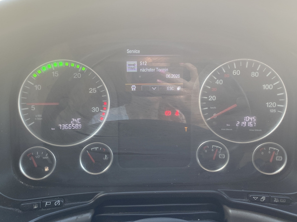 Der abgelesene Kilometerstand beträgt 736660. Die Leistung des Motors beträgt 250 PS. Das Fahrzeug besitzt 2 Achsen.