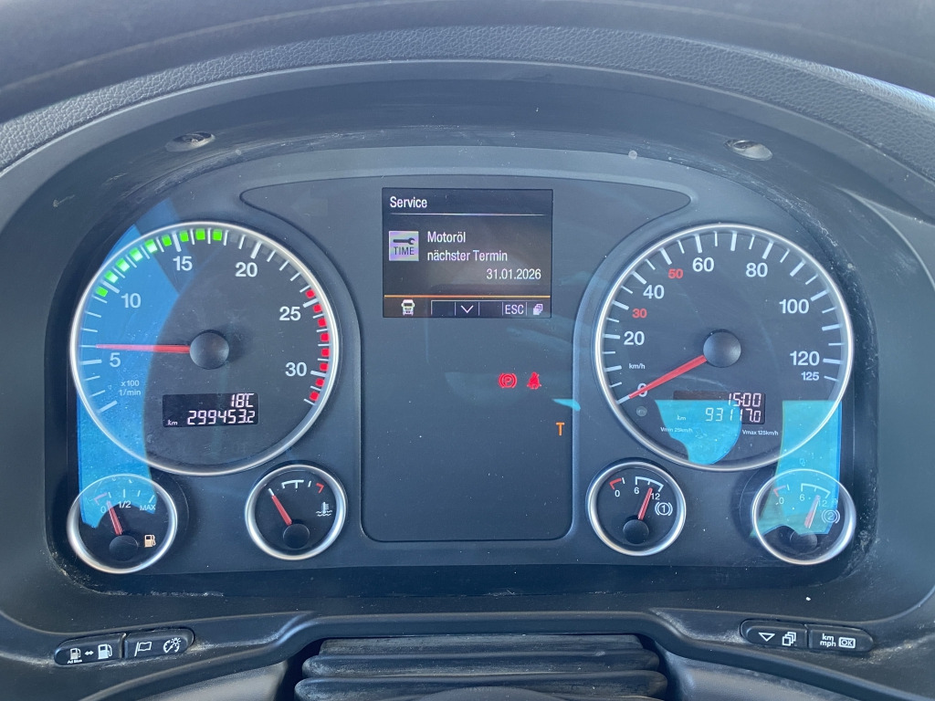Der abgelesene Kilometerstand beträgt 299500. Die Leistung des Motors beträgt 430 PS. Das Fahrzeug besitzt 3 Achsen.