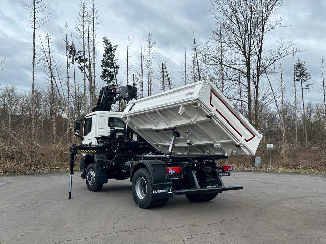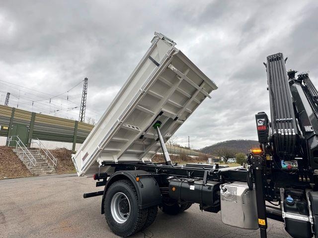 | Zusätzliche Informationen | X TO GO„EUROMIX TO GO“ BIETET IHNEN SOFORT VERFÜGBARE NEU-BESTANDSFAHRZEUGE, AB UNSEREM STANDORT PORTA WESTFALICA/DEUTSCHLAND. FÜR ALLE KUNDEN DIE SICH IN EINER AKUTEN BEDARFSSITUATION BEFINDEN. (KURZFRISTIGE KAPAZITÄTSERWEITERUNG ODER ERSATZINVESTITION)Ihre Vorteile: sofort einsetzbare Komplettfahrzeuge (Betonmischer/Kipper)sofortige Verfügbarkeit direkt vom Hersteller, Aufbau, Montage, Nutzfahrzeug-, bestes Preis-/Leistungsverhältnis, Finanzierungsmöglichkeiten, Inzahlungnahme Ihrer Altfahrzeuge MAN TGM 18.320 4x4 BB Euro6e EuromixMTP Dreiseitenkipper Kran Hiab X-HiDuo 138DS-3 Alternativ Kräne: Hiab X-HiDuo 138DS-4 Gesamtgewicht: ca. 18.000 kg Leergewicht: ca. 10.160 kg Nutzlast: ca. 7.840 kg Dieselmotor MAN D1556 LF07, 294 kW (400 PS) Leistung, 1.800 Nm Drehmoment, Euro 6e, MAN TipMatic 12.26 OD Offroad, Efficiency Plus, Manoeuvre, 3.900 mm Hauptradstand, GSR, 400 l Tankvolumen Kraftstofftank, rechts 60 l Tankvolumen AdBlue-Tank, links, Elektronisches Bremssystem (EBS) Antiblockiersystem (ABS) Wegrollsperre MAN EasyStart, Reifen Vorderachse 315/80R22,5 Lenk-S+G TL (156/150 K) hinter Achse 315/80R22,5 Antrieb-S+G TL (154/150 K), Vorderachse, 9.200 kg, Hinterachse, 13.000 kg, HY-Achse Achsübersetzung, i=3,36, Blattfederung an Hinterachse, Parabel, 3-Blatt, Stahl, verstärkter Achsanschlag, Stoßfänger, Stahl, 3-teilig Tagfahrlicht, LED Außenrückspiegel, elektrisch verstellbar, beheizt, Fahrerkomfortsitz, luftgefedert Armlehnen Fahrersitz, Multifunktionslenkrad, Höhe und Neigung verstellbar, Elektronisches Stabilitätsprogramm (ESP) Antriebsschlupfregelung (ASR) Tempomat (Fahrgeschwindigkeitsregelung FGR), MAN Mediasystem 7 Zoll MAN Lautsprechersystem Connectivity-Board-Modul (RIO Box), Navigationssystem, Anhängerkupplung an Schlussquerträger, ROCKINGER Typ 400 G 150A, Serienmäßige Anschlussgarantie Antriebsstrang für 3. Betriebsjahr bis 450.000 km; Bed. s. Wartungsnachweis Kran Hiab X-HiDuo 138DS-3 HIDUO Der intelligente Packesel, Arbeitsscheinwerfer LED-Version, CE Sicherheits-Basisausstattung EU-konform mit CE-Zertifikat, Steueranlage an 3 hydr, Hochstand links, Ventil unten am Kranfuß, für Fernsteuerung, beidseitige Bedienungsvorrichtung Elektroniksystem SPACE X4 je ein Interface links- und rechtsseitig angeordnet, 24V-DC, Die Fernsteuerung XSDrive piano kann über Funk oder über Kabel bedient, Die unsichtbare Sicherheitskabine OPS, Das D-Gelenk verfügt über eine Hebelverbindung zwischen Knick- und Hubarm (Kniegelenk)., 2m = 4700 kg, 5m = 2600 kg, 7m = 1800 kg, 9m = 1340 kg, 11m = 1060 kg Kipper Ausstattung: EuomixMTP Dreistenkipper EMK3-K Ladekran Typ: EuromixMTP EMK3-K Aufbaubeschreibung Kipperbrücke: Länge: 4.000 mm Breite: 2.410 mm Bordwände: 600 mm Stirnwand: 800 mm Boden: 5mm HARDOX 450 Bordwände: 3mm S355 rechts: manuelle pendel Bordwand links: manuelle pendel Bordwand Rückwand: automatische pendelnd 3mm S355 Stirnwand: 3mm S355 Rückwand: 3mm S355 Zurrösen in den Ecken Hilfsrahamen: Schweißkonstruktion hochwertigem Stahl Hydraulik: Penta Kippzylinder mit Endabschaltung, Steuerblock (Hauptventil) pneumatischer Kippgeber pneumatische Umschalter Kipper / Kran – Ventil am Hilfsrahmen Pumpe und Öltank Optionen: Hydraulikanschluss Kippanhänger Besen und Schaufel mit Halterung klappbarer Unterfahrschuz bodenebene, klappbare Zurrösen EuromixMTP hydraulische betätigt, Bordwände Plane Für weiter Fragen steht Ihnen unsrer Team in folgenden Sprachen zur Verfügung. Wir sprechen Deutsch, We speak English,... ESP, Navigationssystem, Partikelfilter, Kommunalfahrzeug, Standklimaanlage, Navigationsvorbereitung Fahrerhaus: Nahverkehr |