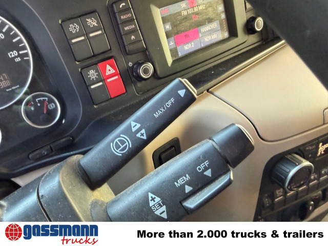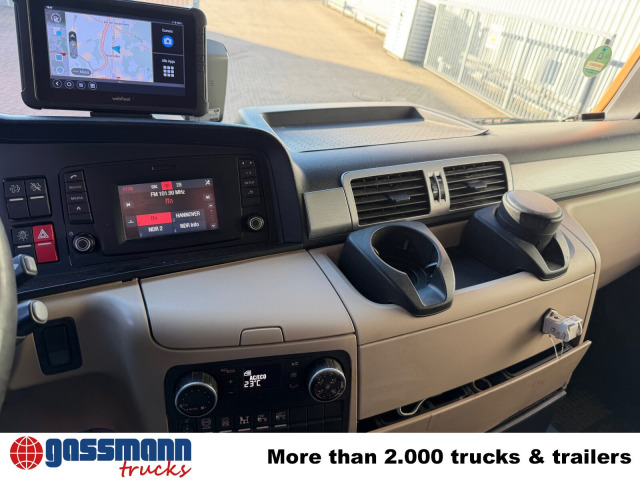 Die Motorleistung in KW beträgt 338. Das Fahrzeug wurde am 03.2017 erstmalig zugelassen. die Laufleistung beträgt 568226 Kilometer. Die Außenfarbe ist Orange/Weiß. Allradantrieb ist vorhanden. Der Hubraum des Motors beträgt 12419 cm³. 10130kg Nutzlast kann transportiert werden. Das Gesamtgewicht beträgt 18000 Kg. Es sind 2 Sitze vorhanden. Das Fahrzeug besitzt 2 Achsen. Eine Luftfederung bietet mehr Komfort als eine klassische Dämpferfederung. Es ist ein manuelles Schaltgetriebe verbaut. Die Seitenspiegel sind elektronisch verstellbar. Das Fahrzeug ist fahrtauglich.