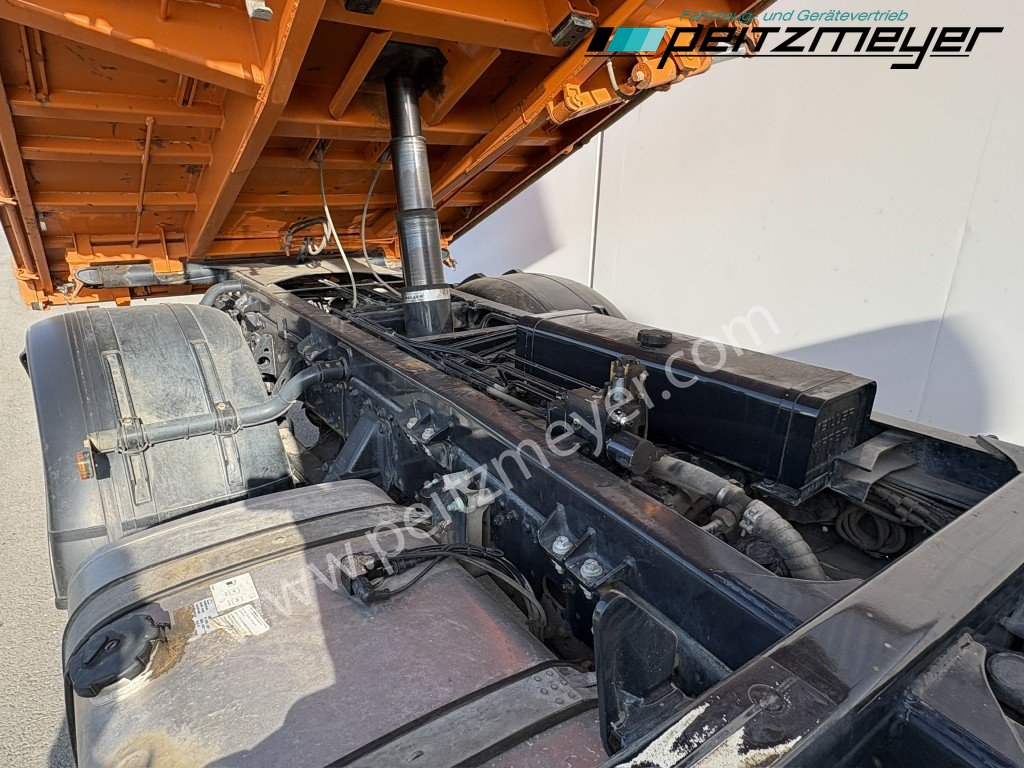 Aufbautyp: Meiller Dreiseitenkipper L x B x H 4.850 x 2.400 x 850 mm, Bordmatic links, Seitenklappe rechts ( federunterstützt ), Klima, Intarder, Standheizung, Kühlschrank, Zug-Ges.Gew. 67.000 KG