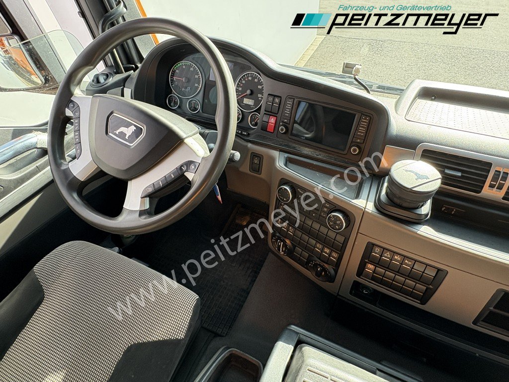 1. Hand, Bordmatic links, 3-Seiten-Kipper, Abgasnorm Euro 6, Radformel 4x4, digitaler Tachograph, Radio, Navigation, Multifunktionslenkrad, Rückwandfenster, Sonnenblende außen, Drucklufthörner, Fahrerhausdach, Rückfahrwarner, Colorverglasung, Auspuff hinter dem Fahrerhaus, Stahlstoßstange, Nahverkehr Fahrerhaus, Intarder, Kipphydraulik, Tank 390 L, Alu, Tempomat, Standheizung, Dachluke, Zentralverriegelung, Fensterheber elektr., Spiegel elektr. verstellbar, Spiegelheizung, Fahrersitz luftgefedert, Sitzheizung Fahrersitz, Kühlschrank, Klimaanlage, Automatikgetriebe 12 Gang, Allradantrieb, hohe Bauart, Diff.- Sperre Vorderachse, Diff.-Sperre Hinterachse, Längs- u. Quersperren, Verteilergetriebe, Geländeuntersetzung, blattgefedert, Anhängerkupplung Maul, 2-Leiter Luftanschluss, Duomatik Luftanschluß, Hydraulikanschluss für Anhänger, Anhängersteckdose 7-polig, Anhängersteckdose ABS, 50er Bolzen, 4 x 4, Umweltplakette: 4(Grün), Automatikgetriebe, Diesel, Schadstoffklasse: EURO6, Klimaanlage, Grundfarbe: orange