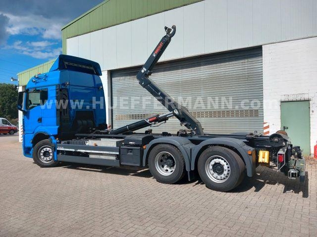 | Zusätzliche Informationen | Dieselmotor MAN D2676 LFBG, 353 kW (480 PS) Leistung, 2.450 Nm Drehmoment, Euro 6e, Getriebe MAN TipMatic 12.28 OD, Motorabhängiger Nebenabtrieb. ABS, EBS, ESP, ASR, Notbremsassistens (EBA nicht abschaltbar), Spurverlassenswarner (LDW), Spurwechselhilfe LCS und Abbiegehilfe, Vollbremsassistent, Hochleistungsmotorbremse EVBec stufbar, Wegrollsperre, elektr. Wegfahrsperre, Tempomat (ACC) abstandsgeregelt, Diff.-Sperre, Anfahrhilfe, digitale Achlastanzeige für luftgederte Achsen LKW + Anhänger, 590 L Dieseltank + 80 L AdBlue, Blattfederung vorne + Luftfederung hinten, Funktion Heben + Senken, Nachlaufliftlenkachse, Tagfahrlicht, Nebelscheinwerfer, Abbiegelicht, Fernlichtassistent, Lichtsensor, Arbeitsscheinwerfer, Multifunktionslenkrad, Zentralverriegelung mit Funk, Standheizung (Wasserzusatzheizung 4 kW), Klimaautomatik Climatronic, Sonnenblende vor Frontscheibe, mech. Dachluke, elektr. Fensterheber, elektr. verstellbar und beheizte Aussenspiegel, luftgefederter Fahrersitz, Schlafliege, Rundumvorhang, Kühlschrank, Kombiinstrument Professional 12,3 Zoll, Infotainmentsteuerung MAN SmartSelect mit Touchpad und Direkteinstiegstasten, MAN Mediasystem Navigation Advanced 7 Zoll, Subwoofer, Anhängerkupplung. Mit Multilift-Abrollkipper Ultima 21 S61 Teleskopausführung, Dornverriegelung, hydr. Verriegelung mit UVV-Schaltung, Eilgang, Senkbremse, hinterer Unterfahrschutz 600mm hydraulisch verstellbar. Beh. Lg. 5.000 6.750mm i.Li. bis 7.000mm i.Li. im Überhang. Das Angebot ist freibleibend, ohne Gewähr und Garantie. Zwischenverkauf bleibt vorbehalten. Für eine Reservierung ist eine Anzahlung in Höhe von 10 % des Kaufpreises erforderlich. Bis zum Geldeingang besteht keine Reservierung oder ein Anspruch auf Verfügbarkeit. Der Kauf kommt erst mit Zahlungseingang zustande. Das Fahrzeug bleibt bis zur vollständigen Bezahlung Eigentum der Firma Hüffermann Krandienst GmbH. Zahlungen werden ausschließlich in Euro ohne zusätzliche Kosten für den Verkäufer und nur per Banküberweisung oder per L/C (letter of credit) akzeptiert. Keine Schecks. - ESP, Navigationssystem, Standheizung Fahrerhaus: Fernverkehr |