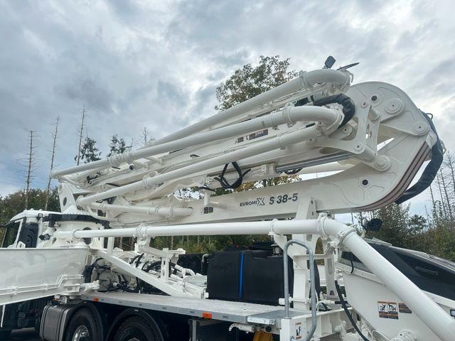 Zusätzliche Informationen X TO GO„EUROMIX TO GO“ BIETET IHNEN SOFORT VERFÜGBARE NEU-BESTANDSFAHRZEUGE, AB UNSEREM STANDORT PORTA WESTFALICA/DEUTSCHLAND. FÜR ALLE KUNDEN DIE SICH IN EINER AKUTEN BEDARFSSITUATION BEFINDEN. (KURZFRISTIGE KAPAZITÄTSERWEITERUNG ODER ERSATZINVESTITION)Ihre Vorteile: sofort einsetzbare Komplettfahrzeuge (Betonmischer/Kipper)sofortige Verfügbarkeit direkt vom Hersteller, Aufbau, Montage, Nutzfahrzeug-, bestes Preis-/Leistungsverhältnis, Finanzierungsmöglichkeiten, Inzahlungnahme Ihrer Altfahrzeuge MAN TGS 26.510 BB 6x4 EURO 6e Betonpumpe EuromixMTP SWAN TSP 38-5 160RZ ( Vermietung möglich ) - NEU NEW withaut registration ohne Zulassung - Fahrzeug Ausstattung: MAN TipMatic 12.28 OD MAN TipMatic Offroad,-TipMatic Efficiency,, 300 l Tankvolumen 35 l Tankvolumen AdBlue-Tank, Hochleistungsmotorbremse MAN EVBec, stufbar, Wegrollsperre MAN EasyStart, Differenzialsperren angetriebene Hinterachsen, Federungsart Blatt/Blatt (BB) an Vorderachsen und angetriebenen Hinterachsen, Sonnenblende, vor Frontscheibe, Scheibenwischerbetätigung, automatisch, mit Regensensor (Wischautomatik), Tagfahrlicht, LED Fernlichtassistent Arbeitsscheinwerfer am Fahrerhaus hinten,, Außenrückspiegel, elektrisch verstellbar, beheizt, Fahrerkomfortsitz, luftgefedert Armlehnen Fahrersitz, Multifunktionslenkrad, Höhe und Neigung verstellbar, Vorbereitung für Mauterfassungssystem Toll Collect, Fahrtschreiber, digital, mit Fernkommunikation (gemäß DSRC), CONTINENTAL, Farbambiente Moon Grey für Fahrerhaus-Innenraum, Klimaanlage, manuell, Hubdach, mechanisch Rückwand Fahrerhaus, mit Fenster, 2 Steckdosen, Fahrerhaus Dachablage, 12 V und 24 V, Antriebsschlupfregelung (ASR), Tempomat (Fahrgeschwindigkeitsregelung FGR), Spurverlassenswarner LDW, MAN Mediasystem Advanced 7 Zoll, MAN Soundsystem Advanced Smartphone Integration EUROMIX MTP Betonpumpe SWAN TSP 38-5 160 RZ Modell: SWAN TSP 38-5 160 RZ Abschnitt: Betonpumpe: Max. theoretische Betonkapazität : 160 m³/hr Max. theoretischer Betondruck : 85 bar Hub 30 pro min Förderzylinder: Ø2100 mm x Ø230 mm Hydraulischer Hauptzylinder : Ø2100 mm x Ø140 x Ø80 mm Betonbentil: S-VentilWasserpumpe: 20 l/min 170 bar Wassertank: 600 l, 12 m Schlauch mit Spritzpistole Betontrichter : 600 Liter Schmierung :Lincoln Automatische Schmierung für Trichtergruppe Hydraulische Pumpen : Rexroth 2xA4VG145, Rexroth A10VO28 Rexroth A17FO045, Blau Ascend AP 20.140/115 Umschaltsystem : Magnetischer Sensor (Näherungsschalter) Schaltkasten: DIGITEX, wasserdicht Fernbedienung : Scanreco-Fernbedienung + 30 m Kabel Abschnitt: Ausleger: Ausleger S 38-5 ( Ausleger 5 Abschnitte, RZ-Faltung ) Typ : RZ-Klappung Max. Vertikale Reichweite : 37,5 m (ohne Endschlauch) Max. Horizontale Reichweite : 32,7 m (ohne Endschlauch) Endschlauch : 3m Einzelflansch, DN 125 Podest-Typ: X-Typ Drehkranz: 365 Grad Drehgeschwindigkeit: 0.3 RPM Durchmesser der Förderleitung: 125 mm (Außendurchmesser 132 mm) 5,5" Flansche & KupplungenSteuerungssystem Abstand zwischen den Vorderbeinen: 6.3 m Abstand zwischen den Hinterbeinen: 8.2 m Für weiter Fragen steht Ihnen unsrer Team in folgenden Sprachen zur Verfügung. Wir sprechen Deutsch, We speak English, Nous parlons français, Mówimy po polsku, Мы говорим по русски, Govorimo Srpskohrvatski - Leichtmetallfelgen, ESP, Navigationssystem, Partikelfilter, Navigationsvorbereitung Fahrerhaus: Nahverkehr