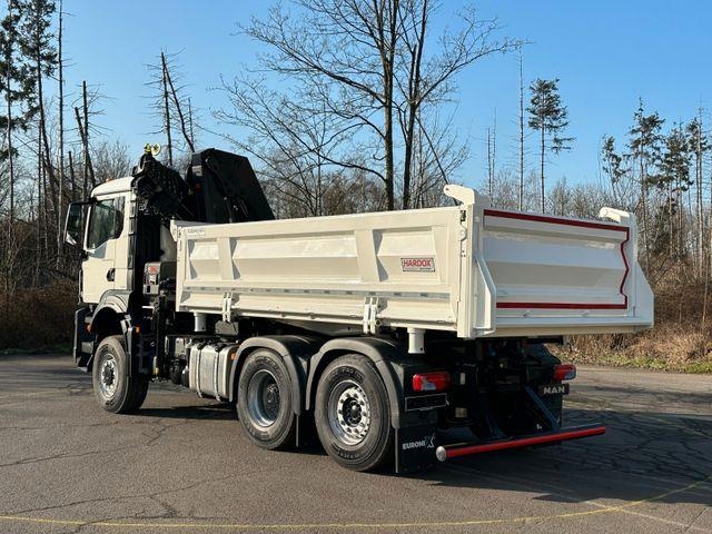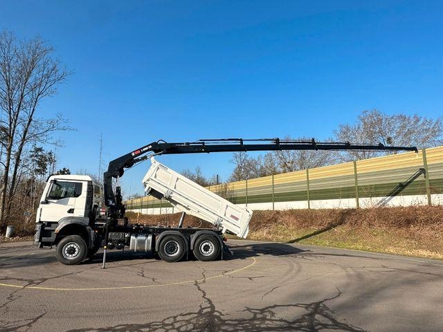 | Zusätzliche Informationen | X TO GO„EUROMIX TO GO“ BIETET IHNEN SOFORT VERFÜGBARE NEU-BESTANDSFAHRZEUGE, AB UNSEREM STANDORT PORTA WESTFALICA/DEUTSCHLAND. FÜR ALLE KUNDEN DIE SICH IN EINER AKUTEN BEDARFSSITUATION BEFINDEN. (KURZFRISTIGE KAPAZITÄTSERWEITERUNG ODER ERSATZINVESTITION)Ihre Vorteile: sofort einsetzbare Komplettfahrzeuge (Betonmischer/Kipper)sofortige Verfügbarkeit direkt vom Hersteller, Aufbau, Montage, Nutzfahrzeug-, bestes Preis-/Leistungsverhältnis, Finanzierungsmöglichkeiten, Inzahlungnahme Ihrer Altfahrzeuge MAN TGS 28.440 BB 6x4-4 EURO 6e 3-Seiten-Kipper EuromixMTP Kran Hiab X Hiduo 228-6 (auch als 6x6 Allrad vorhanden ) - NEU NEW withaut registration ohne Zulassung - Fahrzeug Ausstattung Motor D2676LF80 440 PS / EURO6 SCR 2200 Nm C-R OBD-D, Federung Blatt/ luft, Lenck-Achse Lift Achse Nachlaufachse, Getriebe Automatike, Reifen Vorderachse 385/80 R22,5 Hinterachse Lift Luft und Leck Achse 385/80 R 22,5, Vorderache 9000kg -, Radstand 3600 mm, Fahrerhaus M mittellang, Luftleitblech gegen Staub-Auufwirbelung, Tempomat, Klimaanlage, Geräuschmaßnahme 80 dB (92/97EWG), AP Achsübersetzung Hinterachse AP HPD 1382/HP-, Luftansaugung hochgezogen mit Trockenluftfilter / Vorabscheider, Differentialsperre, Kraftstoffbehälter 300l links und 35l AdBlue, Stahlstoßfänger dreiteilig, MAN BrakeMatic ( Elektronisches Bremssystem ), Navigationssystem, Scheibenbremsen Hinterachse und Vorderachse, Zentralverriegelung, Sonnenblende, Fahrerkomfortsitz luftgefedert, AUX-in/ USB im Armaturenbrett Kipper Ausstattung: EuomixMTP Dreistenkipper EMK3-K Ladekran Typ: EuromixMTP EMK3-K Aufbaubeschreibung Kipperbrücke: Länge: 4.900 mm Breite: 2.410 mm Bordwände: 800 mm Stirnwand: 1.118 mm bodenebene, klappbare Zurrösen Boden: 5mm HARDOX 450 Bordwände: 4mm HARDOX 450, links:EuromixMTP hydraulische betätigt, rechts: manuelle pendel Bordwand Rückwand: automatische pendelnd 4mm Hardox 450 Stirnwand: 4mm HARDOX 450 Rückwand: 4mm HARDOX 450 Hilfsrahamen: Schweißkonstruktion hochwertigem Stahl Hydraulik: Penta Kippzylinder mit Endabschaltung, Steuerblock (Hauptventil) pneumatischer Kippgeber pneumatische Umschalter Kipper / Kran – Ventil am Hilfsrahmen Pumpe und Öltank Optionen: Hydraulikanschluss Kippanhänger Besen und Schaufel mit Halterung klappbarer Unterfahrschuz Plane LANGLEBIG UND ROBUST FÜR SIE IM EINSATZ! Kran Hiab X Hiduo 228-6 6 fach Ausschub, Funkfernsteuerung, hydraulische Leitunge für Anbauteile, 2,55m = 5500 kg, 4,45m = 4150 kg, 6,45m = 2850 kg, 8,45m = 2120 kg, 10,60m = 1680 kg, 12,70m = 1380 kg, 14,70m = 1100 kg, 17,00m = 810 kg Für weiter Fragen steht Ihnen unsrer Team in folgenden Sprachen zur Verfügung. Wir sprechen Deutsch, We speak English, Nous parlons français, Mówimy po polsku, Мы говорим по русски, Govorimo Srpskohrvatski - ESP, Navigationssystem, Partikelfilter, Kommunalfahrzeug, Navigationsvorbereitung Fahrerhaus: Nahverkehr |