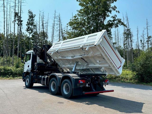 Zusätzliche Informationen X TO GO„EUROMIX TO GO“ BIETET IHNEN SOFORT VERFÜGBARE NEU-BESTANDSFAHRZEUGE, AB UNSEREM STANDORT PORTA WESTFALICA/DEUTSCHLAND. FÜR ALLE KUNDEN DIE SICH IN EINER AKUTEN BEDARFSSITUATION BEFINDEN. (KURZFRISTIGE KAPAZITÄTSERWEITERUNG ODER ERSATZINVESTITION)Ihre Vorteile: sofort einsetzbare Komplettfahrzeuge (Betonmischer/Kipper)sofortige Verfügbarkeit direkt vom Hersteller, Aufbau, Montage, Nutzfahrzeug-, bestes Preis-/Leistungsverhältnis, Finanzierungsmöglichkeiten, Inzahlungnahme Ihrer Altfahrzeuge MAN TGS 33.440 BB 6x4 EURO 6e 3-Seiten-Kipper EuromixMTP Euromix Kippmatik-System Kran Hiab X- Hiduo 228 6 (auch als 6x6 Allrad vorhanden ) - NEU NEW withaut registration ohne Zulassung - Fahrzeug Ausstattung Dieselmotor MAN D2676 LFAZ, 324 kW (440 PS) Leistung, 2.250 Nm Drehmoment, Euro 6e, Getriebe MAN TipMatic 12.28 OD Fahrprogramm MAN TipMatic Efficiency, bis 70.000 kg, Reifen Vorderachse wahlweise 385/65R22,5 Lenk-S+G TL, Reifen Hinterachse wahlweise 315/80R22,5 Antrieb-Nah TL, Vorderachse, 9.200 kg, nicht angetrieben, gerade, Hinterachse HPD-1382, 13.000 kg, AP-Achse mit Durchtrieb, gerade,, Achsübersetzung, i=3,25, Federungsart Blatt/Blatt (BB), Radstand 3900 mm, Tagfahrlicht, LED, Multifunktionslenkrad, Höhe und Neigung verstellbar, 2 Rundumkennleuchten auf Fahrerhausdach, 1 rechts und 1 links, Anhängerkupplung an Schlussquerträger, RINGFEDER Typ RF50 A, Ablagebox, Mittelbereich, rückwärtig, Luftleitblech gegen Staub-Auufwirbelung, Tempomat (Fahrgeschwindigkeitsregelung FGR), Klimaanlage, MAN Mediasystem Advanced Navigation 7 Zoll, Geräuschmaßnahme 80 dB (92/97EWG), Luftansaugung hochgezogen mit Trockenluftfilter / Vorabscheider, Differentialsperre, Kraftstoffbehälter 300l links und 35l AdBlue, Stahlstoßfänger dreiteilig, MAN BrakeMatic ( Elektronisches Bremssystem ), Scheibenbremsen Hinterachse und Vorderachse, Zentralverriegelung, Sonnenblende, Fahrerkomfortsitz luftgefedert, AUX-in/ USB im Armaturenbrett Kipper Ausstattung: EuomixMTP Dreistenkipper EMK3-K Ladekran Typ: EuromixMTP EMK3-K Aufbaubeschreibung Kipperbrücke: Länge: 5.100 mm Breite: 2.410 mm Bordwände: 800 mm Stirnwand: 1.118 mm bodenebene, klappbare Zurrösen Boden: 5mm HARDOX 450 Bordwände: 4mm HARDOX 450, links: EuromixMTP hydraulische betätigt, rechts: manuelle pendel Bordwand oder Kippmatik-System Rückwand: automatische pendelnd 4mm Hardox 450 Stirnwand: 4mm HARDOX 450 Rückwand: 4mm HARDOX 450 Hilfsrahamen: Schweißkonstruktion hochwertigem Stahl Hydraulik: Penta Kippzylinder mit Endabschaltung, Steuerblock (Hauptventil) pneumatischer Kippgeber pneumatische Umschalter Kipper / Kran – Ventil am Hilfsrahmen Pumpe und Öltank Optionen: Hydraulikanschluss Kippanhänger Besen und Schaufel mit Halterung klappbarer Unterfahrschuz Plane LANGLEBIG UND ROBUST FÜR SIE IM EINSATZ! Kran Hiab X Hiduo 228-6 6 fach Ausschub, Funkfernsteuerung, hydraulische Leitunge für Anbauteile, 2,55m = 5500 kg, 4,45m = 4150 kg, 6,45m = 2850 kg, 8,45m = 2120 kg, 10,60m = 1680 kg, 12,70m = 1380 kg, 14,70m = 1100 kg, 17,00m = 810 kg Für weiter Fragen steht Ihnen unsrer Team in folgenden Sprachen zur Verfügung. Wir sprechen Deutsch We speak English Nous parlons français Mówimy po polsku Мы говорим по русски Govorimo Srpskohrvatski - ESP, Navigationssystem, Partikelfilter, Kommunalfahrzeug, Navigationsvorbereitung Fahrerhaus: Nahverkehr