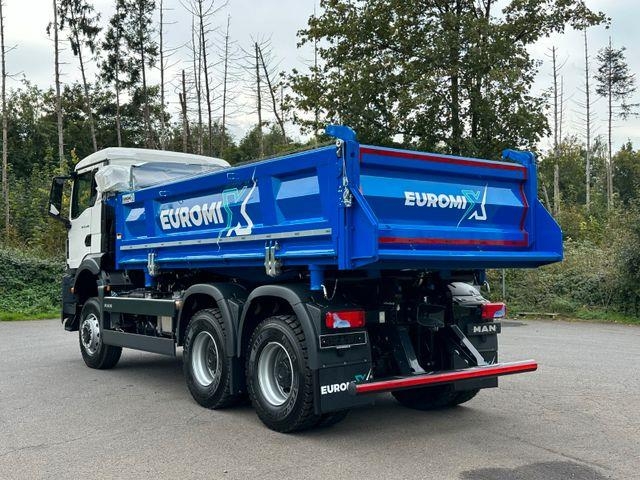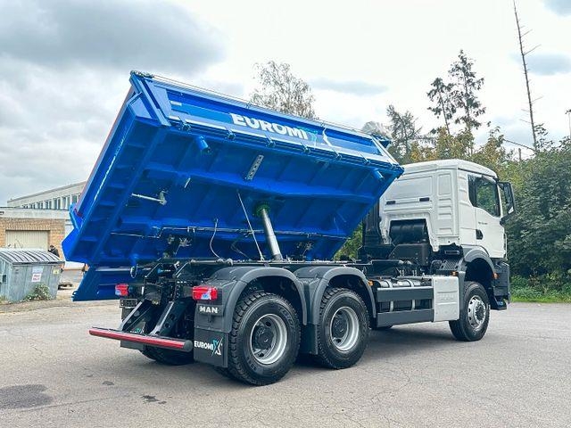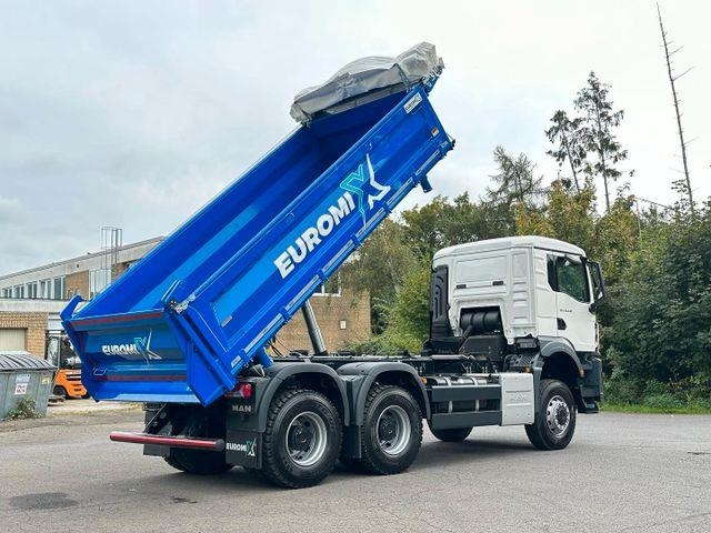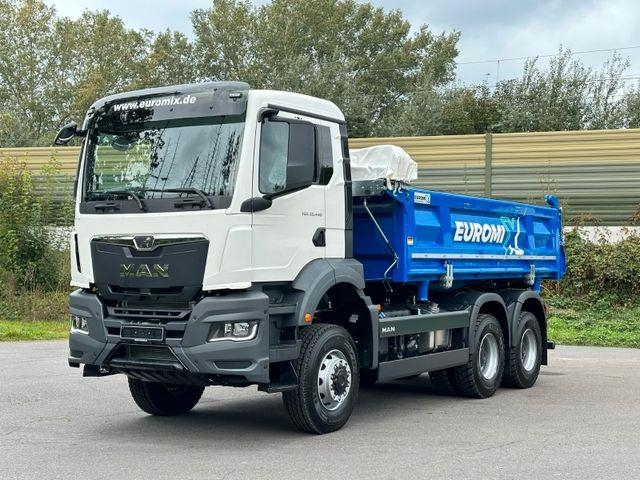 | Zusätzliche Informationen | X TO GO„EUROMIX TO GO“ BIETET IHNEN SOFORT VERFÜGBARE NEU-BESTANDSFAHRZEUGE, AB UNSEREM STANDORT PORTA WESTFALICA/DEUTSCHLAND. FÜR ALLE KUNDEN DIE SICH IN EINER AKUTEN BEDARFSSITUATION BEFINDEN. (KURZFRISTIGE KAPAZITÄTSERWEITERUNG ODER ERSATZINVESTITION)Ihre Vorteile: sofort einsetzbare Komplettfahrzeuge (Betonmischer/Kipper)sofortige Verfügbarkeit direkt vom Hersteller, Aufbau, Montage, Nutzfahrzeug-, bestes Preis-/Leistungsverhältnis, Finanzierungsmöglichkeiten, Inzahlungnahme Ihrer Altfahrzeuge MAN TGS 33.440 BB 6x6 EURO 6e 3-Seiten-Kipper EuromixMTP ( HARDOX ) ( auch als 6x4 vorhanden ) - NEU NEW withaut registration ohne Zulassung - ( VERMIETUNG MÖGLICH ) Fahrzeug Ausstattung: Dieselmotor MAN D2676 LFAZ, 324 kW (440 PS) Leistung, 2.250 Nm Drehmoment, Euro 6e, Getriebe MAN TipMatic 12.28 OD Fahrprogramm MAN TipMatic Offroad, bis 70.000 kg, Reifen Vorderachse wahlweise 315/80R22,5 Lenk-S+G TL, Reifen Hinterachse wahlweise 315/80R22,5 Antrieb-S+G, Vorderachse, 9.000 kg, AP-Achse ohne Durchtrieb, gerade, gelenkt, Hinterachse HP-1352, 13.000 kg, AP-Achse ohne Durchtrieb, gerade, nicht gelenkt, Achsübersetzung, i=3,63, 3.600 mm Hauptradstand, Federungsart Blatt/Blatt (BB), Anhängerkupplung an Schlussquerträger, RINGFEDER Typ RF50 A, MAN Mediasystem Advanced Navigation 7 Zoll, Tagfahrlicht, LED, Multifunktionslenkrad, Höhe und Neigung verstellbar, Fahrerhaus M mittellang, Luftleitblech gegen Staub-Auufwirbelung, Tempomat (Fahrgeschwindigkeitsregelung FGR), Klimaanlage, Geräuschmaßnahme 80 dB (92/97EWG), Luftansaugung hochgezogen mit Trockenluftfilter / Vorabscheider, Differentialsperre, Kraftstoffbehälter 300l links und 35l AdBlue, Stahlstoßfänger dreiteilig, MAN BrakeMatic ( Elektronisches Bremssystem ), Zentralverriegelung, Sonnenblende, Fahrerkomfortsitz luftgefedert, AUX-in/ USB im Armaturenbrett Kipper Ausstattung: EuomixMTP Dreistenkipper EMK3- Typ: EuromixMTP EMK3 Aufbaubeschreibung Kipperbrücke: Länge: 5.200 mm Breite: 2.380 mm Bordwände: 900 mm Stirnwand: 1.118 mm Boden: 5mm HARDOX 450 Bordwände: 4mm HARDOX 450, links: EuromixMTP hydraulische betätigt, rechts: manuelle pendel Bordwand Rückwand: automatische pendelnd 4mm Hardox 450 Stirnwand: 4mm HARDOX 450 Rückwand: 4mm HARDOX 450 Hilfsrahamen: Schweißkonstruktion hochwertigem Stahl Hydraulik: Penta Kippzylinder mit Endabschaltung, Steuerblock (Hauptventil) pneumatischer Kippgeber pneumatische Umschalter Kipper – Ventil am Hilfsrahmen Pumpe und Öltank Optionen: Hydraulikanschluss Kippanhänger Besen und Schaufel mit Halterung klappbarer Unterfahrschuz bodenebene, klappbare Zurrösen LANGLEBIG UND ROBUST FÜR SIE IM EINSATZ! Für weiter Fragen steht Ihnen unsrer Team in folgenden Sprachen zur Verfügung. Wir sprechen Deutsch, We speak English, Nous parlons français, Mówimy po polsku, Мы говорим по русски, Govorimo Srpskohrvatski - ESP, Navigationssystem, Partikelfilter, Kommunalfahrzeug, Standklimaanlage, Navigationsvorbereitung Fahrerhaus: Nahverkehr |