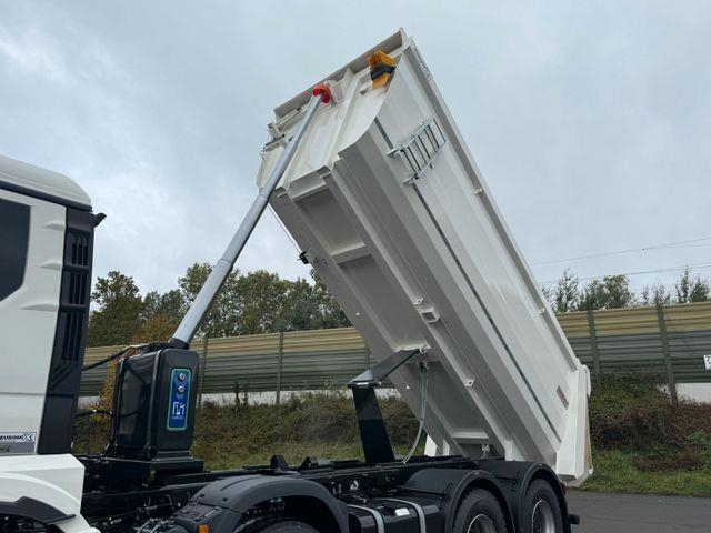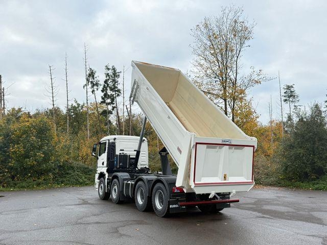 | Zusätzliche Informationen | X TO GO„EUROMIX TO GO“ BIETET IHNEN SOFORT VERFÜGBARE NEU-BESTANDSFAHRZEUGE, AB UNSEREM STANDORT PORTA WESTFALICA/DEUTSCHLAND. FÜR ALLE KUNDEN DIE SICH IN EINER AKUTEN BEDARFSSITUATION BEFINDEN. (KURZFRISTIGE KAPAZITÄTSERWEITERUNG ODER ERSATZINVESTITION)Ihre Vorteile: sofort einsetzbare Komplettfahrzeuge (Betonmischer/Kipper)sofortige Verfügbarkeit direkt vom Hersteller, Aufbau, Montage, Nutzfahrzeug-, bestes Preis-/Leistungsverhältnis, Finanzierungsmöglichkeiten, Inzahlungnahme Ihrer Altfahrzeuge 5x Vorhanden MAN TGS 35.480 BB 8x4 EURO 6e EuromixMTP Mulden Kipper ( Hardox ) = 18m³ = Mulden Kipper - NEU NEW withaut registration ohne Zulassung - Fahrzeug Ausstattung: Dieselmotor MAN D2676 LFAI, (480 PS) Leistung, 2.400 Nm Drehmoment, Euro 6e, MAN TipMatic 12.28 OD Fahrprogramm MAN TipMatic Efficiency, bis 70.000 kg, 400 l Tankvolumen 35 l Tankvolumen AdBlue-Tank, Maximaler Geräuschpegel Fahrzeug, 79 dB nach UN/ECE-R 51.03, Hochleistungsmotorbremse MAN EVBec, stufbar, Wegrollsperre MAN EasyStart, Reifen Vorderachse 385/65R22,5 , Reifen Hinterachse 315/80R22,5 Antrieb-S+G, Vorderachse, 9.200 kg, nicht angetrieben, gerade,, Hinterachse, 13.000 kg, AP-Achse mit Durchtrieb, gerade,, Achsübersetzung, i=3,63, Federungsart Blatt/Blatt (BB), Differenzialsperren angetriebene Hinterachsen, Sonnenblende, vor Frontscheibe, Stoßfänger, Stahl, 3-teilig, Scheibenwischerbetätigung, automatisch, mit Regensensor (Wischautomatik), Tagfahrlicht, LED Fernlichtassistent Arbeitsscheinwerfer am Fahrerhaus hinten,, Außenrückspiegel, elektrisch verstellbar, beheizt, Fahrerkomfortsitz, luftgefedert Armlehnen Fahrersitz, Multifunktionslenkrad, Höhe und Neigung verstellbar, Vorbereitung für Mauterfassungssystem Toll Collect, Fahrtschreiber, digital, mit Fernkommunikation (gemäß DSRC), CONTINENTAL, Farbambiente Moon Grey für Fahrerhaus-Innenraum, Klimaanlage, manuell, Hubdach, mechanisch Rückwand Fahrerhaus, mit Fenster, 2 Steckdosen, Fahrerhaus Dachablage, 12 V und 24 V, Antriebsschlupfregelung (ASR), Tempomat (Fahrgeschwindigkeitsregelung FGR), Spurverlassenswarner LDW, MAN Mediasystem 7 Zoll, MAN Soundsystem Advanced Smartphone Integration Kipper Ausstattung: Euromix MTP TMK 18m³ Mulden-Kipper ( Hardox), Halbrund-Form, CE-Norm, Boden Hardox 450 Tuf 8mm, Seiten Hardox 450 Tuf 6mm, Rückwand pendelnd, Ersatzradhalter mit Hebewinde, Kotflügel Alu, Vielseitige Beleuchtungsmöglichkeiten, Aufstiegstritte zur Kippbrücke ( Aufstiegstritte: Innen in der Kippbrücke ), EuromixMTP Scheren-Kippstabilisator Zubehör: Hydraulisch öffnende Rückwand, Plane manuel oder Elktrische, schütte für Asphalt, Werkzeugkasten, Schaufel- und Besenhalter, Feuerlöscher, Arbeitsscheinwerfer, Schiebeplane manuell oder, elektrisch, mit oder ohne, Planenschutzdach, klappbare Unterfahrschutzsysteme, Teilentladung für Kleinstflächen EUROMIX HINTERKIPPER – LANGLEBIG UND ROBUST FÜR SIE IM EINSATZ! Für weiter Fragen steht Ihnen unsrer Team in folgenden Sprachen zur Verfügung. Wir sprechen Deutsch, We speak English, Nous parlons français, Mówimy po polsku, Мы говорим по русски, Govorimo Srpskohrvatski - ESP, Navigationssystem, Scheckheftgepflegt, Partikelfilter, HU neu, Inspektion neu, Navigationsvorbereitung Fahrerhaus: Nahverkehr |