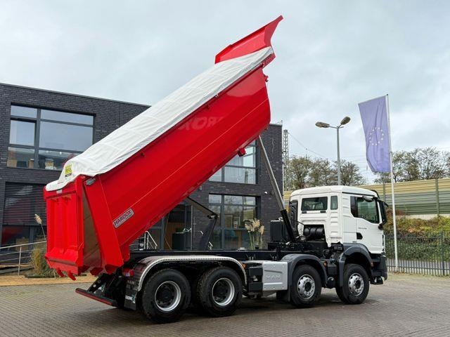 | Zusätzliche Informationen | X TO GO„EUROMIX TO GO“ BIETET IHNEN SOFORT VERFÜGBARE NEU-BESTANDSFAHRZEUGE, AB UNSEREM STANDORT PORTA WESTFALICA/DEUTSCHLAND. FÜR ALLE KUNDEN DIE SICH IN EINER AKUTEN BEDARFSSITUATION BEFINDEN. (KURZFRISTIGE KAPAZITÄTSERWEITERUNG ODER ERSATZINVESTITION)Ihre Vorteile: sofort einsetzbare Komplettfahrzeuge (Betonmischer/Kipper)sofortige Verfügbarkeit direkt vom Hersteller, Aufbau, Montage, Nutzfahrzeug-, bestes Preis-/Leistungsverhältnis, Finanzierungsmöglichkeiten, Inzahlungnahme Ihrer Altfahrzeuge MAN TGS 41.440 BB 8x4 EURO 6e EuromixMTP Mulden Kipper ( HARDOX ) Elektrische Plane - NEU NEW withaut registration ohne Zulassung - ( Vermietung möglich ) Fahrzeug Ausstattung: Dieselmotor MAN D2676 LFAZ, 324 kW (440 PS) Leistung, 2.250 Nm Drehmoment, Euro 6e, MAN TipMatic 12.28 OD Fahrprogramm MAN TipMatic Efficiency, bis 70.000 kg, 300 l Tankvolumen 35 l Tankvolumen AdBlue-Tank, Maximaler Geräuschpegel Fahrzeug, 79 dB nach UN/ECE-R 51.03, Hochleistungsmotorbremse MAN EVBec, stufbar, Wegrollsperre MAN EasyStart, Reifen Vorderachse 315/80R22,5 Lenk-S+G, Reifen Hinterachse 315/80R22,5 Antrieb-S+G, Vorderachse, 9.200 kg, nicht angetrieben, gerade,, Hinterachse, 13.000 kg, AP-Achse mit Durchtrieb, gerade,, Achsübersetzung, i=3,63, Federungsart Blatt/Blatt (BB), Differenzialsperren angetriebene Hinterachsen, Sonnenblende, vor Frontscheibe, Stoßfänger, Stahl, 3-teilig, Scheibenwischerbetätigung, automatisch, mit Regensensor (Wischautomatik), Tagfahrlicht, LED Fernlichtassistent Arbeitsscheinwerfer am Fahrerhaus hinten,, Außenrückspiegel, elektrisch verstellbar, beheizt, Fahrerkomfortsitz, luftgefedert Armlehnen Fahrersitz, Multifunktionslenkrad, Höhe und Neigung verstellbar, Vorbereitung für Mauterfassungssystem Toll Collect, Fahrtschreiber, digital, mit Fernkommunikation (gemäß DSRC), CONTINENTAL, Farbambiente Moon Grey für Fahrerhaus-Innenraum, Klimaanlage, manuell, Hubdach, mechanisch Rückwand Fahrerhaus, mit Fenster, 2 Steckdosen, Fahrerhaus Dachablage, 12 V und 24 V, Antriebsschlupfregelung (ASR), Tempomat (Fahrgeschwindigkeitsregelung FGR), Spurverlassenswarner LDW, MAN Mediasystem 7 Zoll, MAN Soundsystem Advanced Smartphone Integration Kipper Ausstattung: Euromix MTP TMK 16m³ TMK 18m³ TMK 20m³ Mulden-Kipper ( HARDOX ), Halbrund-Form, CE-Norm, Boden Hardox 450 8mm, Seiten Hardox 450 6mm, Rückwand pendelnd, Ersatzradhalter mit Hebewinde, Kotflügel Alu, Vielseitige Beleuchtungsmöglichkeiten, Aufstiegstritte zur Kippbrücke ( Aufstiegstritte: Innen in der Kippbrücke ), EuromixMTP Scheren-Kippstabilisator Zubehör: Hydraulisch öffnende Rückwand, Plane manuel oder Elktrische, schütte für Asphalt, Werkzeugkasten, Schaufel- und Besenhalter, Feuerlöscher, Arbeitsscheinwerfer, Schiebeplane manuell oder, elektrisch, mit oder ohne, Planenschutzdach, klappbare Unterfahrschutzsysteme, Teilentladung für Kleinstflächen EUROMIX HINTERKIPPER – LANGLEBIG UND ROBUST FÜR SIE IM EINSATZ! Für weiter Fragen steht Ihnen unsrer Team in folgenden Sprachen zur Verfügung. Wir sprechen Deutsch, We speak English, Nous parlons français, Mówimy po polsku, Мы говорим по русски, Govorimo Srpskohrvatski - ESP, Navigationssystem, Partikelfilter, Kommunalfahrzeug, Navigationsvorbereitung Fahrerhaus: Nahverkehr |