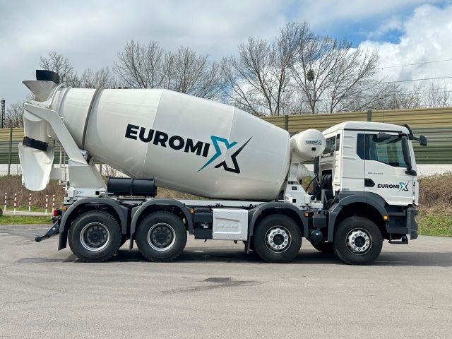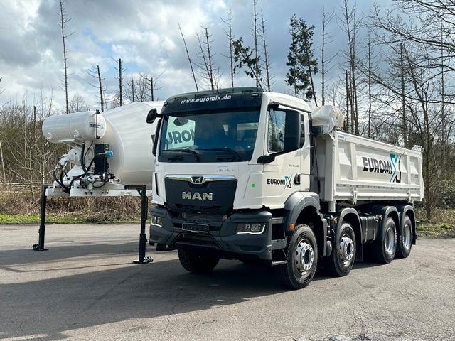 | Zusätzliche Informationen | X TO GO„EUROMIX TO GO“ BIETET IHNEN SOFORT VERFÜGBARE NEU-BESTANDSFAHRZEUGE, AB UNSEREM STANDORT PORTA WESTFALICA/DEUTSCHLAND. FÜR ALLE KUNDEN DIE SICH IN EINER AKUTEN BEDARFSSITUATION BEFINDEN. (KURZFRISTIGE KAPAZITÄTSERWEITERUNG ODER ERSATZINVESTITION)Ihre Vorteile: sofort einsetzbare Komplettfahrzeuge (Betonmischer/Kipper)sofortige Verfügbarkeit direkt vom Hersteller, Aufbau, Montage, Nutzfahrzeug-, bestes Preis-/Leistungsverhältnis, Finanzierungsmöglichkeiten, Inzahlungnahme Ihrer Altfahrzeuge MAN TGS 41.440 BB 8x4 EURO 6e Euromixmtp WECHSELSYSTEM 3-Seiten-Kipper + Fahrmischer - NEU NEW withaut registration ohne Zulassung - Fahrzeug Ausstattung: Dieselmotor MAN D2676 LFAZ, 324 kW (440 PS) Leistung, 2.250 Nm Drehmoment, Euro 6e, MAN TipMatic 12.28 OD Fahrprogramm MAN TipMatic Efficiency, bis 70.000 kg, 300 l Tankvolumen 35 l Tankvolumen AdBlue-Tank, Maximaler Geräuschpegel Fahrzeug, 79 dB nach UN/ECE-R 51.03, Hochleistungsmotorbremse MAN EVBec, stufbar, Wegrollsperre MAN EasyStart, Reifen Vorderachse 315/80R22,5 Lenk-S+G, Reifen Hinterachse 315/80R22,5 Antrieb-S+G, Vorderachse, 9.200 kg, nicht angetrieben, gerade,, Hinterachse, 13.000 kg, AP-Achse mit Durchtrieb, gerade,, Achsübersetzung, i=3,63, Federungsart Blatt/Blatt (BB), Differenzialsperren angetriebene Hinterachsen, Sonnenblende, vor Frontscheibe, Stoßfänger, Stahl, 3-teilig, Scheibenwischerbetätigung, automatisch, mit Regensensor (Wischautomatik), Tagfahrlicht, LED Fernlichtassistent Arbeitsscheinwerfer am Fahrerhaus hinten,, Außenrückspiegel, elektrisch verstellbar, beheizt, Fahrerkomfortsitz, luftgefedert Armlehnen Fahrersitz, Multifunktionslenkrad, Höhe und Neigung verstellbar, Vorbereitung für Mauterfassungssystem Toll Collect, Fahrtschreiber, digital, mit Fernkommunikation (gemäß DSRC), CONTINENTAL, Farbambiente Moon Grey für Fahrerhaus-Innenraum, Klimaanlage, manuell, Hubdach, mechanisch Rückwand Fahrerhaus, mit Fenster, 2 Steckdosen, Fahrerhaus Dachablage, 12 V und 24 V, Antriebsschlupfregelung (ASR), Tempomat (Fahrgeschwindigkeitsregelung FGR), Spurverlassenswarner LDW, MAN Mediasystem 7 Zoll, MAN Soundsystem Advanced Smartphone Integration Kipper Ausstattung: EuomixMTP Dreistenkipper EMK3- 16m³ - Typ: EuromixMTP EMK3 Aufbaubeschreibung Kipperbrücke: Länge: 5.900 mm Breite: 2.410 mm Bordwände: 900 mm Stirnwand: 1.100 mm Boden: 6mm HARDOX 450 Bordwände: 5mm HARDOX 450 rechts: manuelle pendel Bordwand Rückwand : automatische pendelnd 6mm HARDOX 450 Rückwand: 6mm S355 Hilfsrahamen: Schweißkonstruktion hochwertigem Stahl Hydraulik: Penta Kippzylinder mit Endabschaltung, Steuerblock (Hauptventil) pneumatischer Kippgeber pneumatische Umschalter Ventil am Hilfsrahmen Pumpe und Öltank Optionen : Hydraulikanschluss Kippanhänger Besen und Schaufel mit Halterung klappbarer Unterfahrschuz bodenebene, klappbare Zurrösen EuromixMTP hydraulische betätigt, Bordwände Zurrösen in den Ecken Plane Fahrmischer Ausstattung ( AUCH ALS EM 9m³ ) Model: EM 10 L, Nennvolumen 10m³ Fertigbeton, Mischtrommel in leichter Bauweise, Mischtrommel in leichter Ausführung aus dem Material HARDOX S450, Mischspiralen in leichter Ausführung aus dem Material HARDOX S500, Getriebe Fabrikat ZF P5300, Hydraulikpumpe Fabrikat Bosch Rexroth, Hydraulikmotor Fabrikat Bosch Rexroth, Ölkühlanlage integriert Fabrikat ASA, Mischsteuerung mechanisch und Start Stopp elektrisch, Druckluftwasseranlage, Wasseranschluss am Standpodest mit Schlauchleitung, Wasserfüllleitung, einseitig mit C-Kupplung, Mischtrommel mit einer Serviceklappe, Steigleiter ... ESP, Navigationssystem, Partikelfilter, Kommunalfahrzeug, Navigationsvorbereitung Fahrerhaus: Nahverkehr |