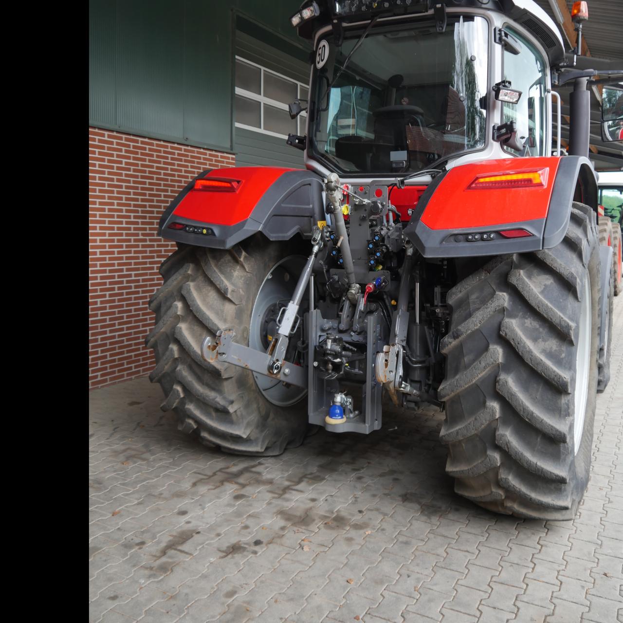 Getriebebezeichnung: Dyna7, Laststufen: 7, Druckluftanlage (2-Kreis), Elektronische Hubwerksregelung (EHR), Einhebelsteuergerät (elektronisch), Gefederte Vorderachse, Luftgefederter Sitz, Rundumleuchte, Wendeschaltung, Zugmaul - automatisch, höhenverstellbare Anhängevorrichtung, Ölrücklaufanschluss (drucklos), Frontkraftheber-Außenbedienung, Dreipunkt-Außenbedienelement, Hydrauliksteuergeräte-Außenbedienung, Heckzapfwelle-Außenbedienung, Arbeitsscheinwerfer 6x vorn, Arbeitsscheinwerfer 6x hinten, Abgasnachbehandlung / AdBlue, Oberlenker mechanisch (hinten)
