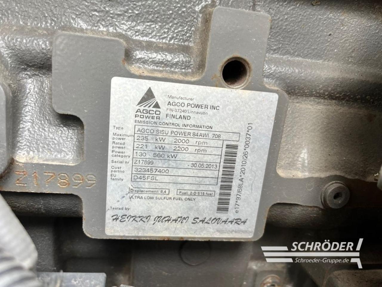 Die Leistung des Motors beträgt 355 PS. Die Motorleistung in KW beträgt 265. Die Nutzungsdauer liegt bei 1438 Stunden .