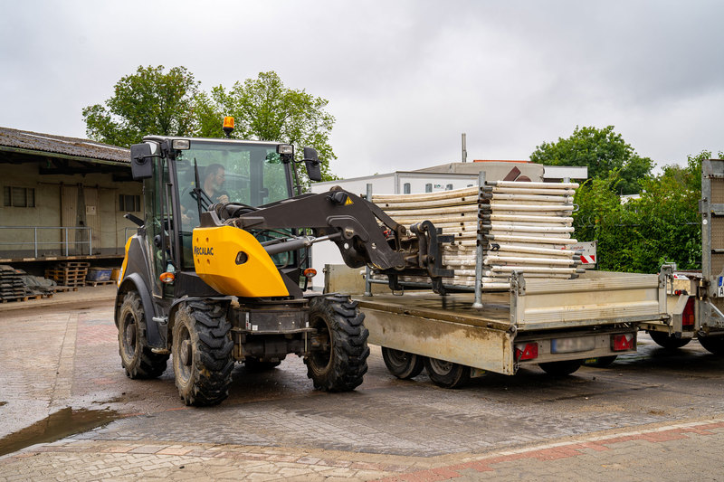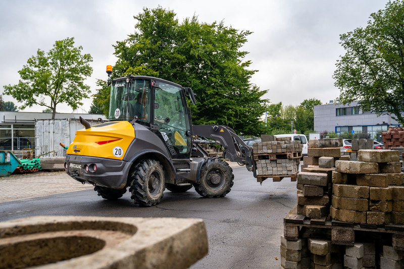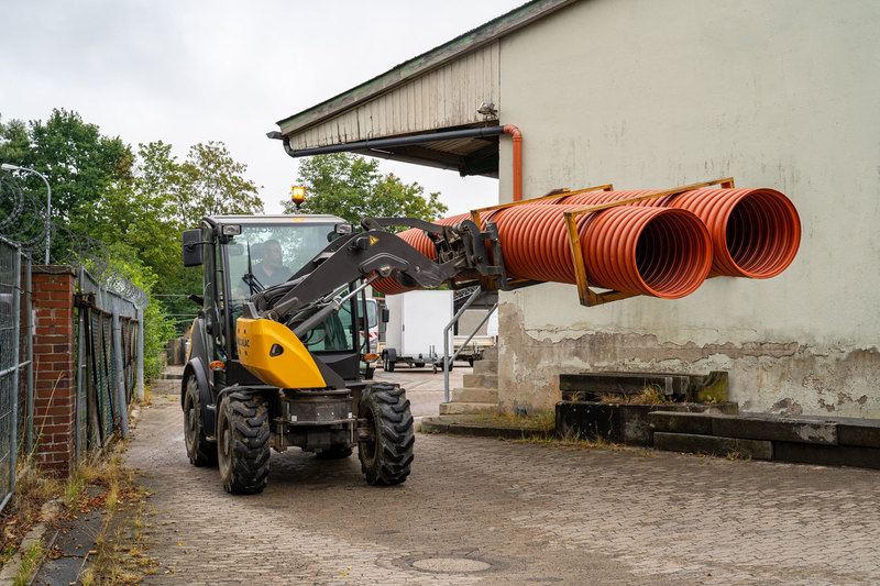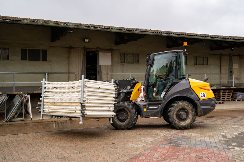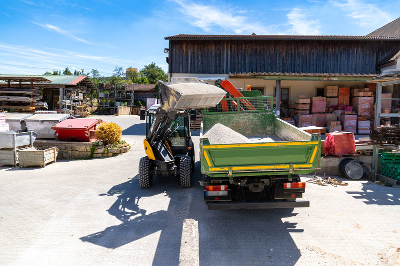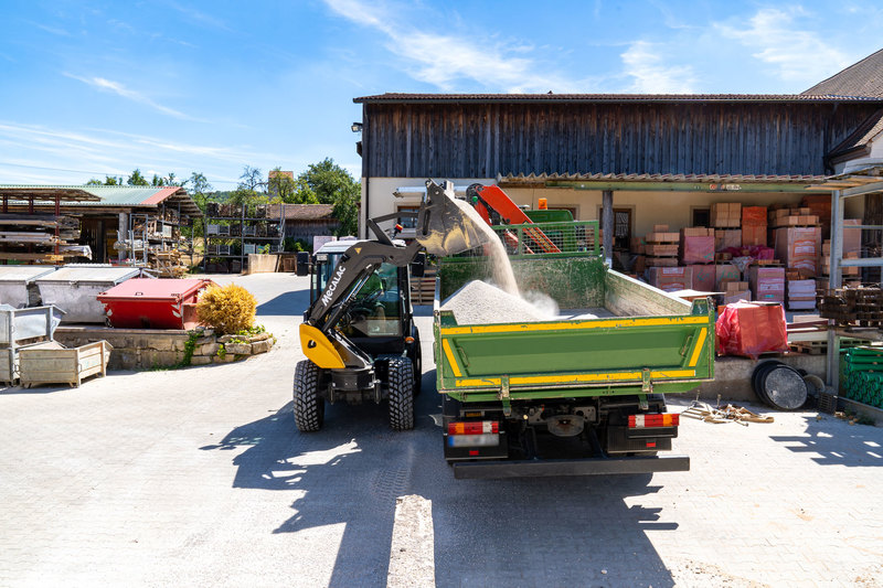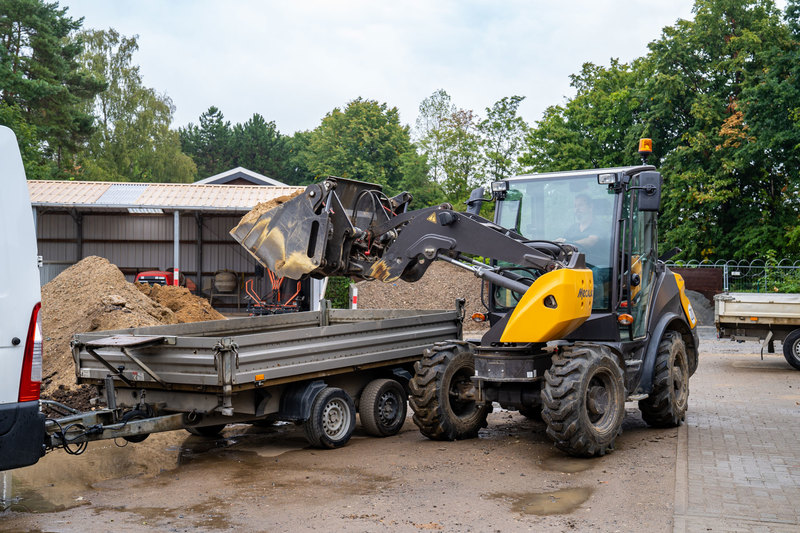 Schwenklader mit Starrahmen, Tier 4 Final oder EU Stage V, DPF/DOC, Panoramakomfortkabine ROPS/FOPS mit Heizung, StVZO-Ausstattung, 100% Differentialsperre vorn/hinten, Bereifung Mitas MPT-04 12.5-18, Handgas und Tempolimit, Dauerschaltung Zusatzhydraulik, marktkompatibler hydraulischer Schnellwechsel (Zettelmeyer), Zusatzhydraulik schwarz/weiß, Abschleppkupplung, Palettengabel 2,5t FEM 2B und 0,60m³-Schaufel 1700mm mit Zähnen