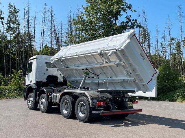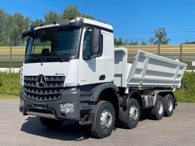 | Zusätzliche Informationen | X TO GO„EUROMIX TO GO“ BIETET IHNEN SOFORT VERFÜGBARE NEU-BESTANDSFAHRZEUGE, AB UNSEREM STANDORT PORTA WESTFALICA/DEUTSCHLAND. FÜR ALLE KUNDEN DIE SICH IN EINER AKUTEN BEDARFSSITUATION BEFINDEN. (KURZFRISTIGE KAPAZITÄTSERWEITERUNG ODER ERSATZINVESTITION)Ihre Vorteile: sofort einsetzbare Komplettfahrzeuge (Betonmischer/Kipper/Auflieger)sofortige Verfügbarkeit direkt vom Hersteller, Aufbau, Montage, Nutzfahrzeug-, bestes Preis-/Leistungsverhältnis, Finanzierungsmöglichkeiten, Inzahlungnahme Ihrer Altfahrzeug Mercedes-Benz Arocs Modellgeneration 5 4145 8x4 EURO 6e EuromixMTP Kipper - NEU NEW withaut registration ohne Zulassung - Fahrzeug Ausstattung Motor OM471, R6, 12,8 l, (451 PS), 2100 Nm Euro6e, Getriebe G 330-12/ 11,63-0,77 Fahrprogramm offroad PowerShift 3 Automatik, Vorderachse 7,5 t Hinterachse Tellerad 300 Planeten, 13,4 t, Reifen Vorderachse Reifen 315/80 R 22,5 Hinterachse Reifen 315/80 R 22,5, Radstand 4550 mm, Fahrerhaus M-Fahrerhaus Classic Space, Scheibenbremse, an VA und HA, Tank 290 l, links, 735 x 700 x 750 mm, Alu AdBlue-Tank 25 l, Fahrerhausrückwand, mit Fenster Frontscheibe getönt, Lichtsensor Tagfahrlicht, Dachluke/Lüftungsklappe Dach, Sonnenblende außen, transparent, Multifunktionslenkrad, Multimedia Cockpit, Klimaanlage, Tempomat, Fahrzeugklasse N3G, Geländefahrzeug, Komofortschließanlage Kipper Ausstattung EuomixMTP Dreistenkipper EMK3- 14m³ 16m³ - Typ: EuromixMTP EMK3 Aufbaubeschreibung Kipperbrücke: Länge: 5.900 mm Breite: 2.410 mm Bordwände: 900 mm Stirnwand: 1.100 mm Boden: 6mm HARDOX 450 Bordwände: 5mm HARDOX 450 rechts: manuelle pendel Bordwand Rückwand : automatische pendelnd 6mm HARDOX 450 Rückwand: 6mm S355 Hilfsrahamen: Schweißkonstruktion hochwertigem Stahl Hydraulik: Penta Kippzylinder mit Endabschaltung, Steuerblock (Hauptventil) pneumatischer Kippgeber pneumatische Umschalter Ventil am Hilfsrahmen Pumpe und Öltank Optionen : Hydraulikanschluss Kippanhänger Besen und Schaufel mit Halterung klappbarer Unterfahrschuz bodenebene, klappbare Zurrösen EuromixMTP hydraulische betätigt, Bordwände Zurrösen in den Ecken Plane LANGLEBIG UND ROBUST FÜR SIE IM EINSATZ! Für weiter Fragen steht Ihnen unsrer Team in folgenden Sprachen zur Verfügung. Wir sprechen Deutsch, We speak English, Nous parlons français, Mówimy po polsku, Мы говорим по русски, Govorimo Srpskohrvatski - ESP, Navigationssystem, Partikelfilter, Kommunalfahrzeug, Standklimaanlage, Navigationsvorbereitung Fahrerhaus: Nahverkehr |
