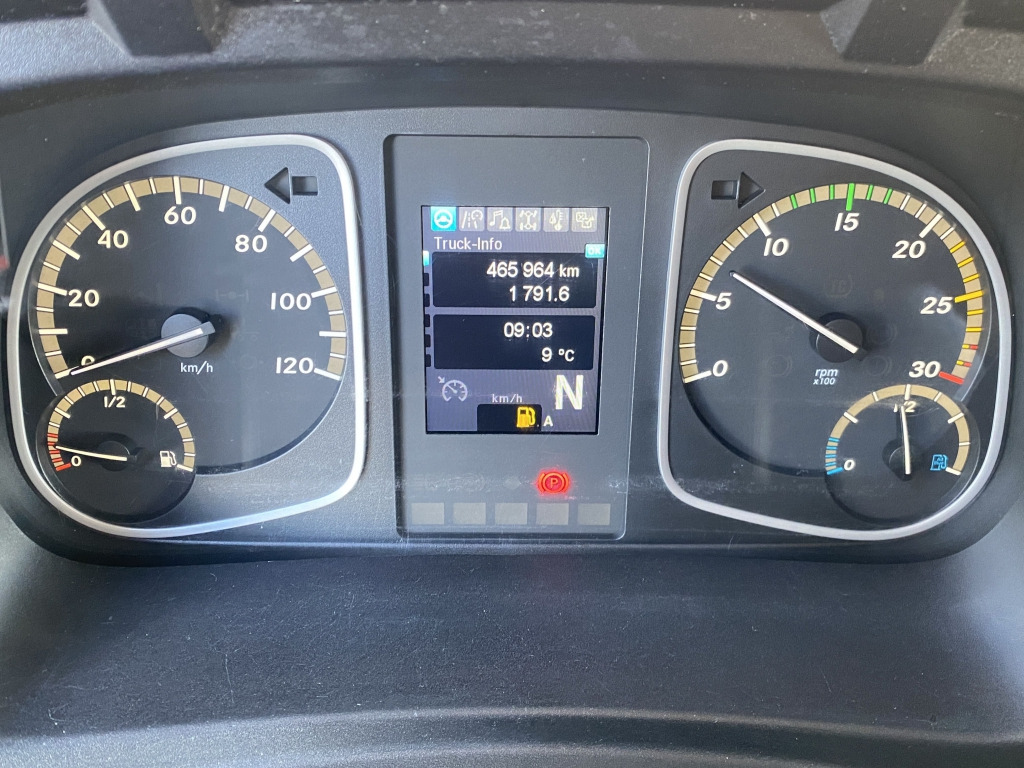 Der abgelesene Kilometerstand beträgt 465970. Die Leistung des Motors beträgt 177 PS. Das Fahrzeug besitzt 2 Achsen.