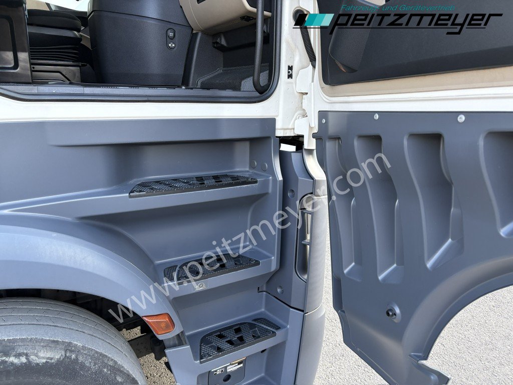 Abgasnorm Euro 6, digitaler Tachograph, elektrische Sonnenrollos, Multifunktionslenkrad, Lederlenkrad, Zusatzsteckdose 12V, Sonnenblende außen, Lufthörner, Colorverglasung, Mercedes Stern beleuchtet, Dachspoiler, Seitenspoiler, Luftfederung Fahrerhaus, Sicherungsautomaten, Spannungswandler 24V/12V, Alutank 570 L + Zusatztank 430 L, Reifendruckkontrolle , Tempomat, elektr. Aufstelldach, Fensterheber elektr., Fahrersitz luftgefedert, 2. Liege oben, Sitzheizung Fahrersitz, Klimaautomatik, Diff.-Sperre Hinterachse, Vollluftgefedert, PPC (Predictive Powertrain Control), Retarder, Warmwasser-Zusatzheizung, Standklima, Ambientebeleuchtung, Anhänger Stabilitätsregel - Assistent (TSA), Bigspace - Fahrerhaus, Mirror Cam, Regen- Lichtsensor, Navigation, Achslastmeßeinrichtung, Bi - Xenon - Scheinwerfer mit Abbiegelicht, Led - Tagfahrlicht, LED Rückleuchten, Zusatzscheinwerfer , Scheinwerfer Reinigungsanlage, Abstandshalte-Assistent, Spurhalteassistent, Stabilitätsregel-Assistent, Aufmerksamkeits-Assistent, Verkehrszeichen-Assistent, Abbiegeassistent, Aktiver Brems Assistent, Reifendruckkontrolle, Kühlschrank, Umweltplakette: 4(Grün), Automatikgetriebe, Diesel, Schadstoffklasse: EURO6, Hinterachsenantrieb, Klimaautomatik, Grundfarbe: weißExtras in der AusstattungABS, Airbag, Bordcomputer, Fahrerschlafplatz, Navigationssystem, Retarder/Intarder, Standheizung, Standklimaanlage, Tempomat, Vollverkleidung, Federung: Luft, Nutzlast(kg):9712, Dauerbremse: Retarder