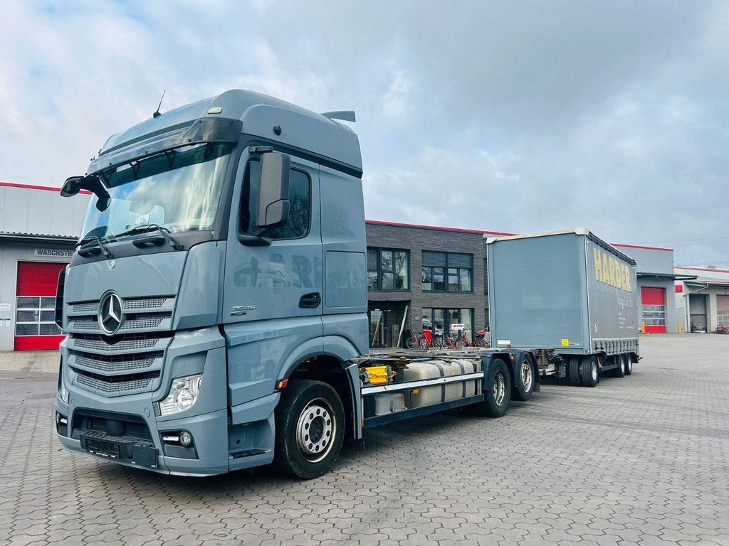 Abgasnorm EURO 6, Achskonfiguration: 6x2, Actros 4, Anhängerbremse 2 - Leitung, Anschlüsse links, Anhängersteckdose 24V / 15-polig, Außenspiegel elektr. verstell- und heizbar, Differentialsperre Hinterachse, Druckluftbehälter Stahl, Fahrerhaus: L BigSpace, Federung: Luft / Luft (Volluft), Fensterheber elektrisch, Frontscheibe getönt, Generator 100 A, Getriebe 12-Gang - Typ: G 211-12, Hinterachse Tellerrad 440, Karosserie/Aufbau: Fahrgestell, Komfortliege unten, Komfortschließanlage, Kommunikationsschnittstelle, Kühlerjalousie, Lenkhelfpumpe geregelt, Lifteinrichtung Nachlaufachse, Motor 12,8 Ltr. - 330 kW R6 Diesel (OM 471), Motorbremse, Motorraum-Kapselung, Nachlaufachse einzelbereift, Rampenspiegel, Restwärmeausnutzung, Scheibenbremsen Vorder- und Hinterachse, Sitzbezug / Polsterung: Stoff, Sitze im Fahrerhaus: Beifahrerfunktionssitz, Sitze im Fahrerhaus: Fahrersitzlehne umklappbar, Spannungswandler 24V / 12V 10 A, Spritzschutz vorn, Stabilisator Vorderachse, Stabilisator zusätzlich, Hinterachse / Nachlaufachse, Stauklappe außen links, Steckdose Fahrerhaus 24V, Tachograph / EG-Kontrollgerät, Türverlängerung für Fahrerhaus, Unterbodenverkleidung aerodynamisch geformt, Unterfahrschutz vorn, Vorbereitung Mauterfassung, Vorderachse gekröpft, Wasserpumpe geregelt, Zul. Gesamtgewicht 25,00 t, Zusatzheizung (Wasser)