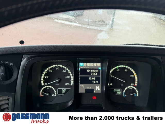 Die Motorleistung in KW beträgt 375. Das Fahrzeug wurde am 12.2021 erstmalig zugelassen. die Laufleistung beträgt 134690 Kilometer. Die Außenfarbe ist Astralsilber. Ein Mettalic-Lack ist üblicherweise ein Zweischicht-Lack, bestehend aus einer Lackschicht und dem Klarlack. Der Hubraum des Motors beträgt 12809 cm³. 13514kg Nutzlast kann transportiert werden. Das Gesamtgewicht beträgt 26000 Kg. Es sind 2 Sitze vorhanden. Das Fahrzeug besitzt 3 Achsen. Eine Luftfederung bietet mehr Komfort als eine klassische Dämpferfederung. Es ist ein Automatikgetriebe verbaut. Die Seitenspiegel sind elektronisch verstellbar. Für die Kommunikation ist Bluetooth vorhanden. Nebelscheinwerfer helfen bei schlechten Sichtverhältnissen. Das Fahrzeug ist fahrtauglich.
