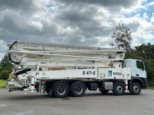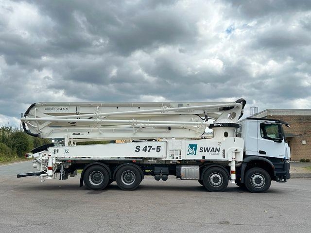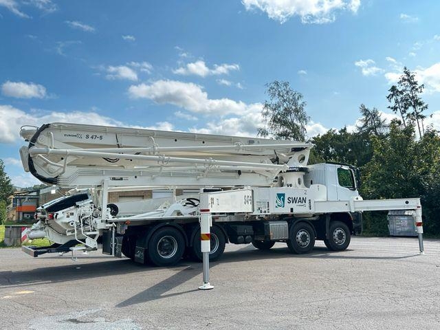 | Zusätzliche Informationen | X TO GO„EUROMIX TO GO“ BIETET IHNEN SOFORT VERFÜGBARE NEU-BESTANDSFAHRZEUGE, AB UNSEREM STANDORT PORTA WESTFALICA/DEUTSCHLAND. FÜR ALLE KUNDEN DIE SICH IN EINER AKUTEN BEDARFSSITUATION BEFINDEN. (KURZFRISTIGE KAPAZITÄTSERWEITERUNG ODER ERSATZINVESTITION)Ihre Vorteile: sofort einsetzbare Komplettfahrzeuge (Betonmischer/Kipper)sofortige Verfügbarkeit direkt vom Hersteller, Aufbau, Montage, Nutzfahrzeug-, bestes Preis-/Leistungsverhältnis, Finanzierungsmöglichkeiten, Inzahlungnahme Ihrer Altfahrzeuge Mercedes-Benz Arocs 5 4142 8x4 Euro 6e Betonpumpe EuromixMTP SWAN TSP 47-5 160RZ ( Vermietung möglich ) - NEU NEW withaut registration ohne Zulassung - Fahrzeug Ausstattung: Motor OM471, R6, 12,8 l, 308 kW (420 PS), 2500 Nm, Getriebe G 330-12/11,63-0,77 Fahrprogramm offroad PowerShift 3 Automatik, Vorderachse 7,5 t Hinterachse Tellerad 300 Planeten, 13,4 t, Reifen Vorderachse Reifen 315/80 R 22,5 Hinterachse Reifen 315/80 R 22,5, Radstand 5450 mm, S-Fahrerhaus ClassicSpace, 2,30 m, Tunnel 170 mm, Scheibenbremse, an VA und HA, Tank 290 l, links, 650 x 565 x 950 mm, Stahl AdBlue-Tank 25 l, Fahrerhausrückwand, mit Fenster Frontscheibe getön, Lenkung, Servotwin, 4-Achser und 9t VA, Luft, Elektronisches Bremssystem mit ABS und ASR ABS, Feststellbremse, elektronisch, Fahrerhausrückwand, mit Fenster, Regensensor, Vorrüstung für Rückfahrkamera, Tachograf digital, 2. Generation, ADR, Radio, mit USB-Anschluss und Bluetooth, Rückfahrwarner, Klimaanlage, LED-Tagfahrlicht, Tempomat Internal, ATS-Gewährleistung nach AGB, 3 Jahre/250.000 km EUROMIX MTP Betonpumpe SWAN TSP 47-5 160RZ Modell: SWAN TSP 47-5 160 RZ Abschnitt: Betonpumpe: Max. theoretische Betonkapazität : 160 m³/hr, Max. theoretischer Betondruck : 85 bar, Hub 30 pro min, Förderzylinder: Ø2100 mm x Ø230 mm, Hydraulischer Hauptzylinder : Ø2100 mm x Ø140 x Ø80 mm, Betonbentil: S-VentilWasserpumpe: 20 l/min 170 bar, Wassertank: 800 l, 12 m Schlauch mit Spritzpistole, Betontrichter : 600 Liter, Schmierung :Lincoln Automatische Schmierung für Trichtergruppe, Hydraulische Pumpen : Rexroth 2xA4VG145, Rexroth A10VO28, Rexroth A17FO045, Blau Ascend AP 20.140/115, Umschaltsystem : Magnetischer Sensor (Näherungsschalter), Schaltkasten: DIGITEX, wasserdicht, Fernbedienung : Scanreco-Fernbedienung + 30 m Kabel Abschnitt: Ausleger: Ausleger S 47-5 ( Ausleger5 Abschnitte, RZ-Faltung ), Typ : RZ-Klappung, Max. Vertikale Reichweite : 46,8 m (ohne Endschlauch), Max. Horizontale Reichweite : 42,8 m (ohne Endschlauch), Endschlauch : 3m Einzelflansch, DN 125, Podest-Typ: X-Typ, Drehkranz: 365 Grad, Drehgeschwindigkeit: 0.3 RPM, Durchmesser der Förderleitung: 125 mm (Außendurchmesser 132 mm) 5,5" Flansche & KupplungenSteuerungssystem, Abstand zwischen den Vorderbeinen: 8.6 m, Abstand zwischen den Hinterbeinen: 8.7 m Für weiter Fragen steht Ihnen unsrer Team in folgenden Sprachen zur Verfügung. Wir sprechen Deutsch, We speak English, Nous parlons français, Mówimy po polsku, Мы говорим по русски, Govorimo Srpskohrvatski - ESP, Partikelfilter Fahrerhaus: Nahverkehr |