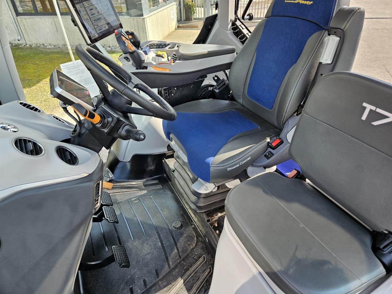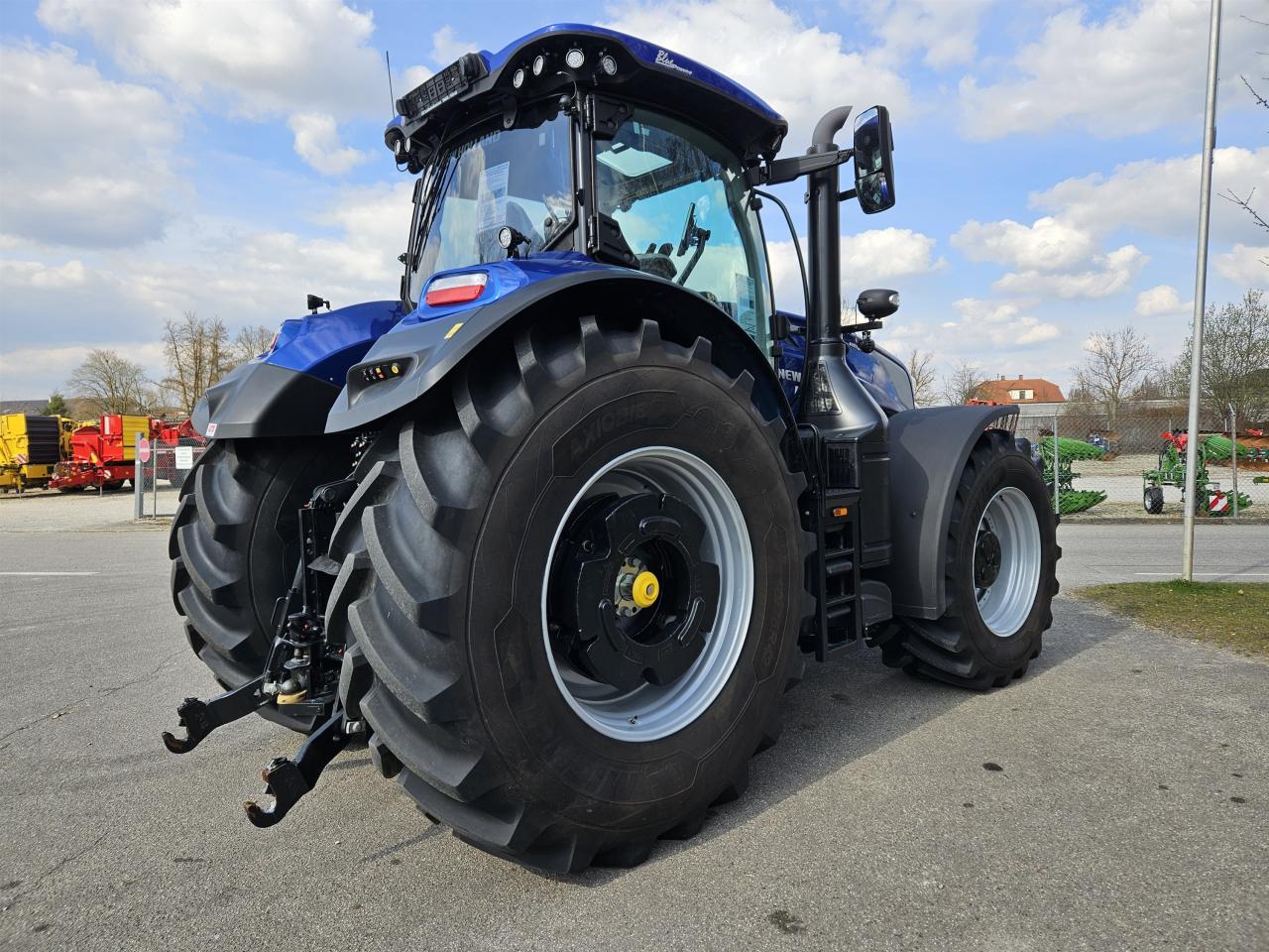 gebraucht, Blue Power Metallic-Lackierung, New Generation, Viscotronic-Lüfter & Motor Stufe 5, CVT Garu, Auto-Command-stufenlos Getriebe 50 km/h Eco, Höstzulässiges Gesamtgewicht 17.200 kg, hinten Fixfelge, vorne Verstellfelge, Michelin-Bereifung, Less Tire & Wheel Package, Hinterradgewichte 1.000 kg (4x250 kg), Spurverstellachse 2.490 mm (98"), Kotflügelverbreiterung hinten, schmale Ausführung (90 mm), dynamische Vorderradkotflügel 680 mm, HD-Hochleistungsbremsscheiben Hinterachse, gefederte und gebremste Vorderachse KAT. 4.75, intelligente Anhängerbremse - die Funktion ermöglicht gezieltes, automatisches Bremsen des Anhängers - nur in Verbindung mit pneumatischer Anhängerbremse, RAdar, Intelliview Monitor, 5 Hecksteuergeräte elektronisch, 2 Zwischenachssteuergeräte elektronisch, automaitsche Unterlenkerstabilisatoren, Heckhubwerk Kat. 3 mit 2 aussenliegenden Hubzylindern (120 mm), Schnellfanghaken, Kugelhalter und hydraulischem Oberlenker, automatische Anhängekupplung schnell höhenverstellbar, Bolzen 38 mm, Zugpendel HD mit eingeschweißter K 80 Kugel (2 Positionen: kurz ) 4.000 kg Stützlast, lang = 3.500 kg Stützlast), Druckluftbeschaffungsanlage und Zweileiterbremsventil, externer Druckluftanschluss (159 cm² Kompressor) mit Schlauch und Ausblaspistole, 4-fach Heckzapfwelle 540/540E/1.000/1.000 E U/min., mit elektrischer Drehzahlumschaltung, Zapfwellenstummel 6 Zähne montiert + 21 Zähne (1 3/8") beigelegt, ISOBUS Cl. 2, ISOBUS Steckdose 11783 im Heck mit 9-poliger Incab Steckdose, Kotflügelbedienung beidseitig, (EHR, Zapfwelle, 1 konfigurierbares Hecksteuergerät, Motordrehzahlspeicher und Motorstop), Fronthubwerk-Management (Ansteuerung über Fahrhebel, Einstellung über Intelliview 12 Monitor, Fronthydraulik mit 2 zusätzlichen Leitungen nach vorne für Zwischenachssteuergeräte, Frontkamera in Motorhaube + Heckkamera (konfigurierbar im Terminal), Haupt- und Zusatzkraftstofftank (601 l) und AdBlue-Tank (96 l) ohne Tankschutz, Horizon Ultra Kabine, Semi-aktiv gefederte Kabine (hydraulische Federelemente für Hangausgleich, Schwingungstilgung, Wank-Stabilisierung, Progression im Bereich der Endanschläge in 3 Stufen am Monitor einstellbar), Kabine ohne Türe rechts (nur Notausstieg), Kabine mit Freisichtdachfenster, Standard Windschutzscheibe, Dynamikc Comfort Kabine: Luftfedersitz mit Lederbezug mit Niederfrequenzfederung, automatsiche Gewichtsanpassung, dynamische Dämpfung, Sitzheizung, Beifahrersitz mit Lederbezug, Lederlenkrad, Fußmatte mit New Holland Emblem, Klimaautomatik und Ambientebeleucht ung in der Kabine, manuell teleskopierbare, elektrisch einstellbare Rückspiegel mit Weitwinkel & Spiegelheizung, kippbare Rundumleuchte links, elektronische Parksperre, elektronischer Schlüssel und elektrischer Startknop (Wegfahrsperre, elektrische Türverriegelung), Bluetooth Radio mit UKW/DAB+/USB & AUX Anschlss / telefonie über die Bedienarmlehne und Monitor steuerbar, Halteschiene rechts am Dach für Monitore, Zubehör über RAM Halterung (2x verstellbar), inkl. 3-poliger Stecksode, großes Staufach unter dem Feifahrersitz (temperiert über die Klimaanlage), 4 Premium Lautsprecher im Kabinendach + Subwoofer Kenwood, erweiterbarer Joystick (bis zu 6 Steuergeräten belegbar, 2 frie belegbare Tasten, Vor- und Rückwärtstaste, Farbereichswechsel), Info View Frontmonitor mitschwenkend, hinter Lenkrad montiert, Intelliveiw 12 Monitor, Vorbereitung Spurführsystem (Vorbereitung der Lenkung, Vorderachse, Sensorik, Ventile, Verkabelung, Antennehalterung auf dem Dach) + variable Lenkübersetzung Custom Steer aktivierung für Intelli Steer, 5 Jahre Professional Telemetrie (Enthält: My PLM Connect, File Transfer, Geolokalisierung, uneingeschränkte CAN Bus Parameter Übertragung, Maschinenalarm und Benachricht igung per Mail/SMS, remonte Unterstützung durch den Handel über Display und/oder EST), kostenlose upgrade auf lebenslanges-Abonnement nach Abschluss der Endnutzer-Litzenzvereinbarung (EULA), erweiterete Aktivierung Precision Famring und Spurführung für IntelliView 12 Monitor (Enthält Task Controller BAS, TC-SC (128 Teilbreiten), TC Geo (2 Produkte)), HTS 2 Vorgewendemanagement, Wege- und / oder Zeitabhängig aufnehmen und abspielen, nachträgliche Konfiguration jederzeit möglich, speicherbar, Radarsensor, P&CM 4G Modem, L/Welcome Package, EU/ISO Länder-Konfiguration, Deutschland Konfiguration: Betriebshandbuch Deusch, Kennzeichenhalterung am Dach hinten, Kennzeichenhalterung vorne, Rechtsverkehr, Unterlegkeile, Geschwindigkeitsaufkleber, 250 A Lichtmaschine, 360° Lichtpaket (14 LED Scheinwerfer im Dach, davon 6 vorne und 8 hinten), LED Fahrscheinwerfer in der Motorhaube + obenliegende LED Fahrscheinwerfer (auf und abblendbar, Umschaltbar über Monitor), 4 LED Arbeitsscheinwerfer in der Motorhaube + 4 seitliche LED Arbeitsscheinwerfer + 2 LED Arbeitsscheinwerfer auf den Heckkotflügeln, Power Beyond Anschlussplatte ohne Kupplungen, Value Description, Axialkolben-Verstellpumpe mit max. 220 l/min. Förderleistung