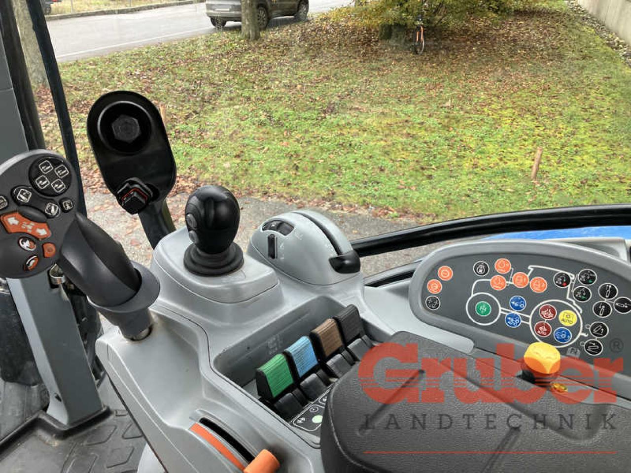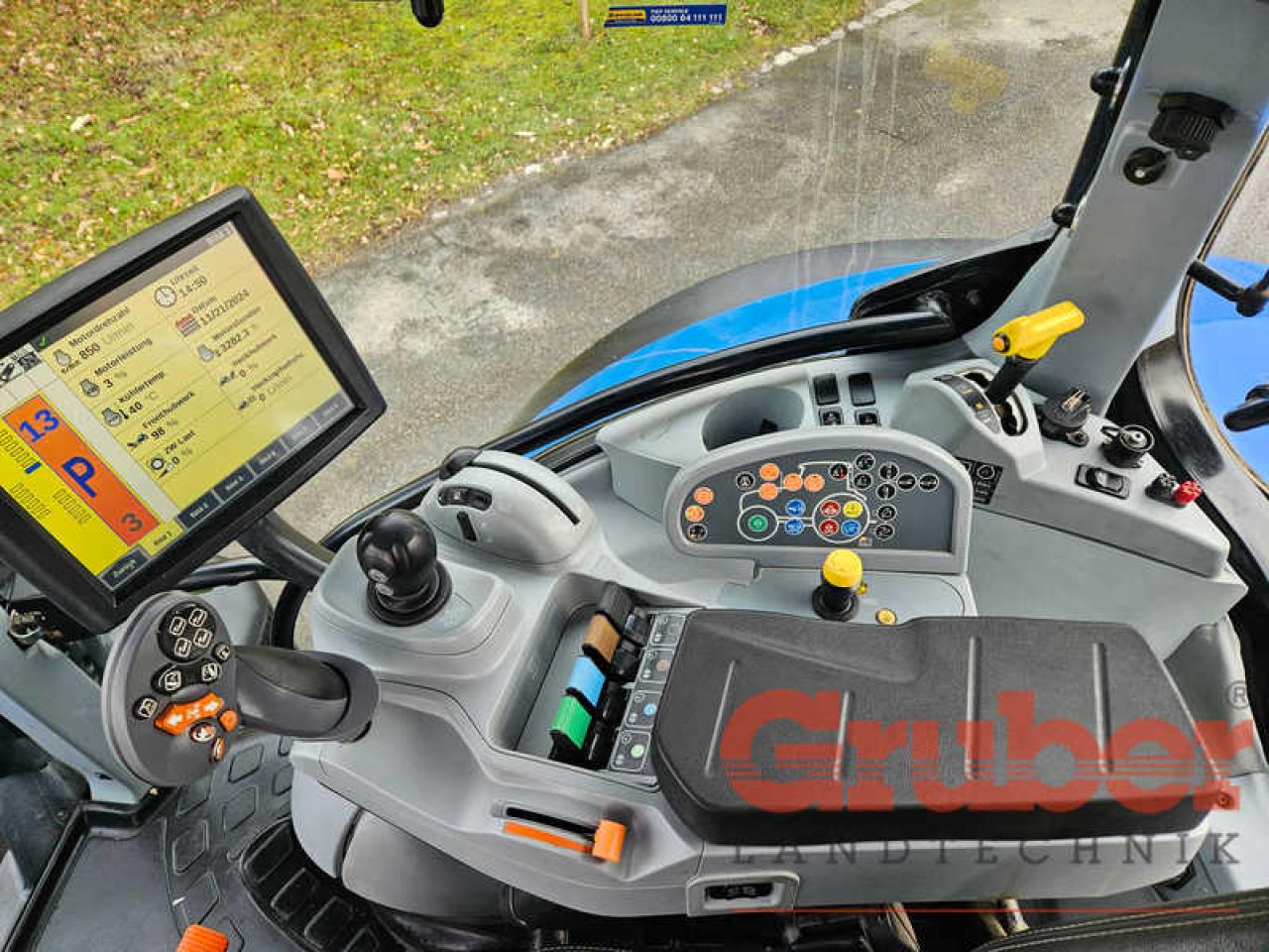 gebraucht, Kraftstofftank 330 l, Viscotronic-Lüfter, Lichtmaschine 150A, 19/6 Range Command Getriebe, 40 km/h ECO, Zapfwelle 540/540E/1000, Kotflügelbedienung beidseitig (EHR, Zapfwelle und 3. Hecksteuergerät), Hochleistungsbremsscheiben, Druckluftbeschaffungsanlage, Hydraulikpumpe 113 l/min, Joystick auf Bedienarmlehne links, Hydraulischer Oberlenker bei Heckhubwerk mit 100 mm Zylindern & Kat 2/3 Schnellkupplern, DYNAMIC COMFORT Kabinenausstattung: DYNAMIC COMFORT Luftfedersitz mit DDS-Niederferquenzfederung, Beifahrersitz mit Radiovorbereitung, Kabinenfederung, Klimaanlage, Obenliegende Fahrscheinwerfer, Kabine ohne TopView Freisichtdachfenster, Teleskopspiegel elektrisch verstellbar und beheizbar mit Weitwinkel, New Holland Lackierung standard,