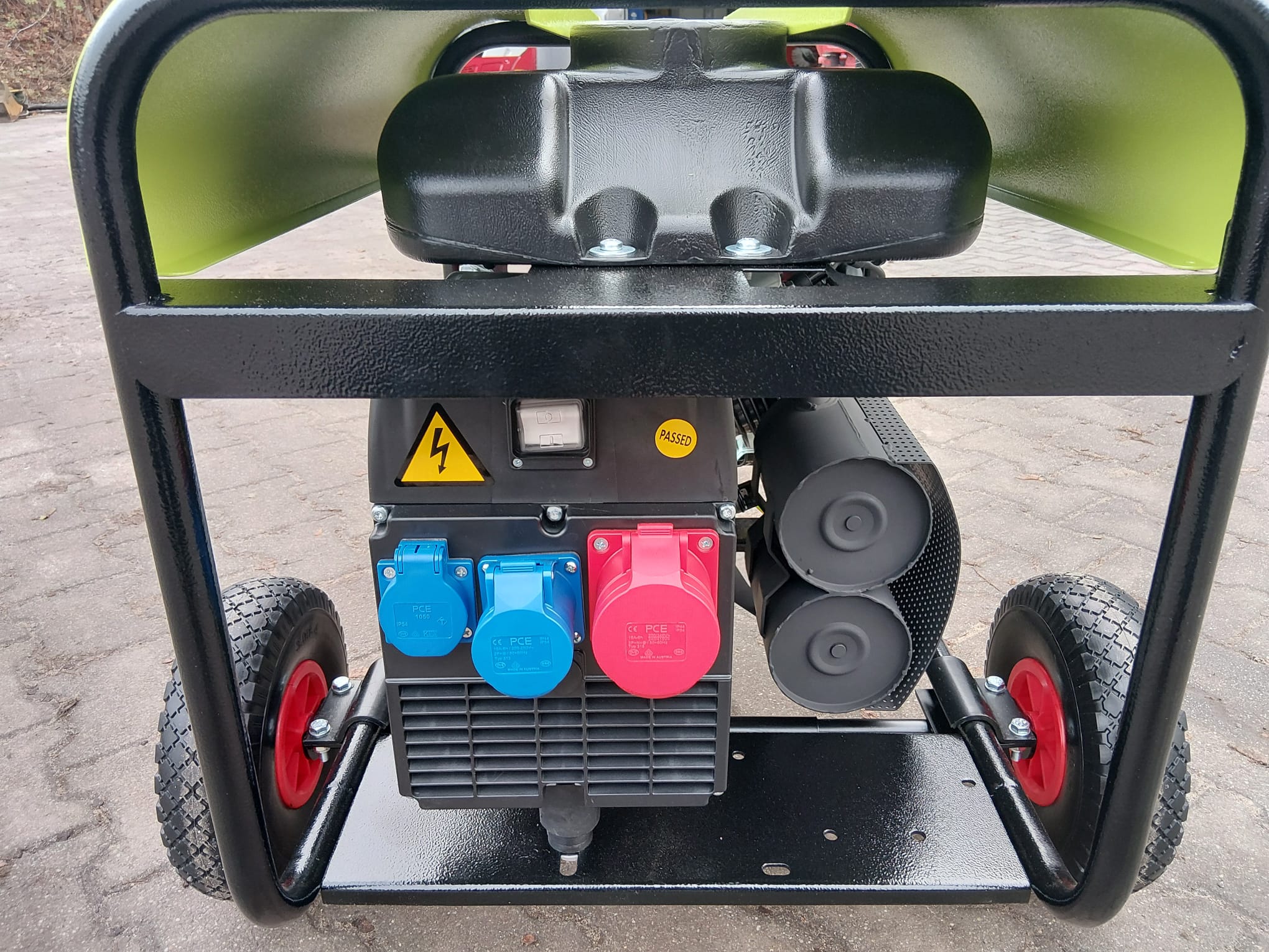 Stromerzeuger ES8000THI, AVR-HDE, Stage V, Handstart, Benzin Honda GX390, Dauerleistung (kVA) 400V/230V: 7 / 3,7, 1x SCHUKO 16A 230V, 1x CEE 16A 230V, 1x CEE 16A 400V, Autom. Spannungsregulierung (AVR), Thermoschutzschalter, Ölmangelabschaltung, Abgasstufe V, Radsatz optional erhältlich