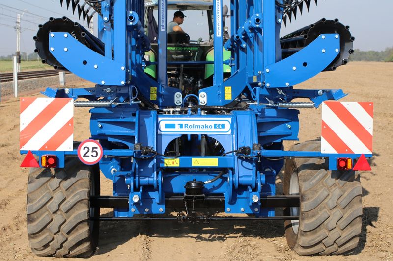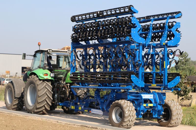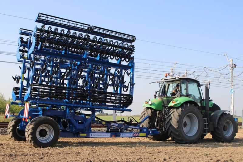 Rolmako Big Field System Carrier mit Scheibenegge U 652. Arbeitsbreite 8,0 Meter.