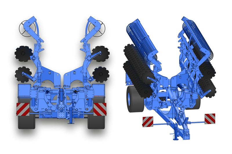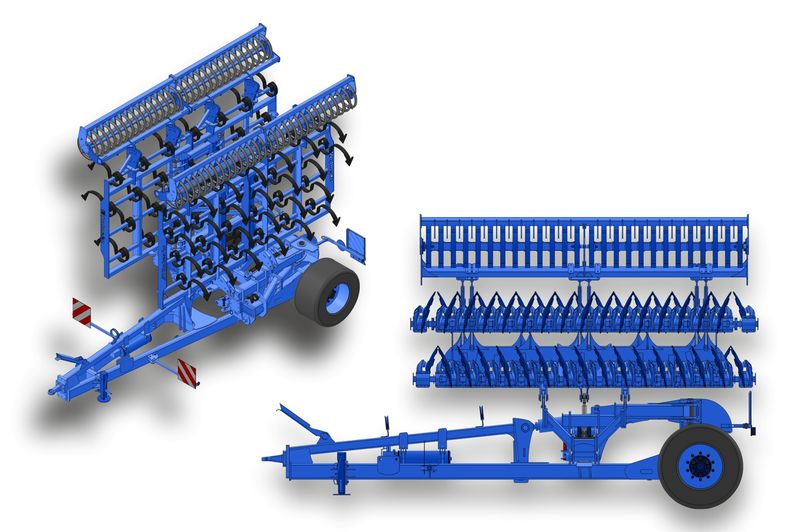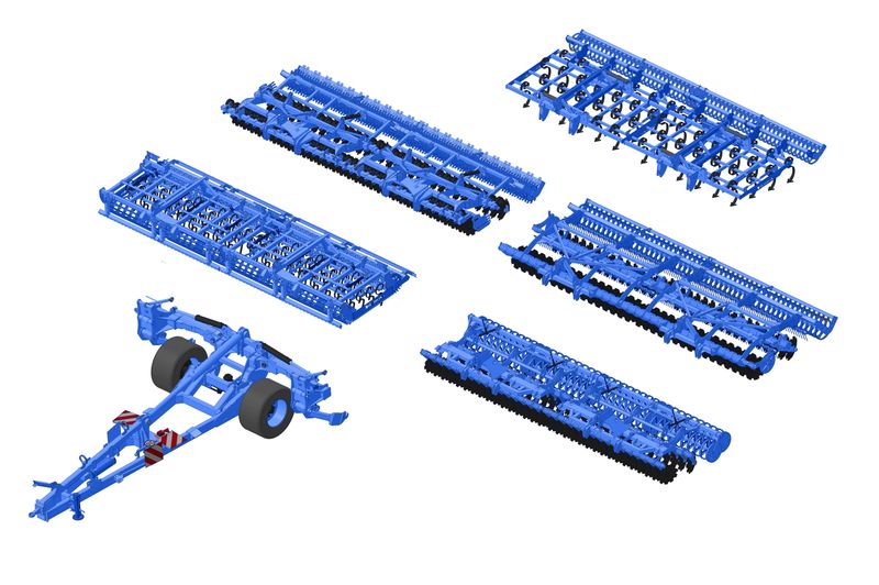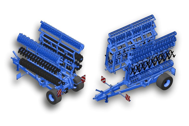 Das universelle Transportsystem eignet sich gleichermaaßen gut für die Kombination mit Saatbettkombinationen und Großfederzinkeneggen (Leichtgrubbern).