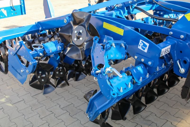 Grundausstattung: Dreipunktanbau, Gummipuffer 40 x 180 mm Longlife, hydraulische Tiefenregulierung, wartungsfreie Scheibenlagerung, Scheibenbalkenabstand 90 cm, Rohrpackerwalze Ø 500 mm.