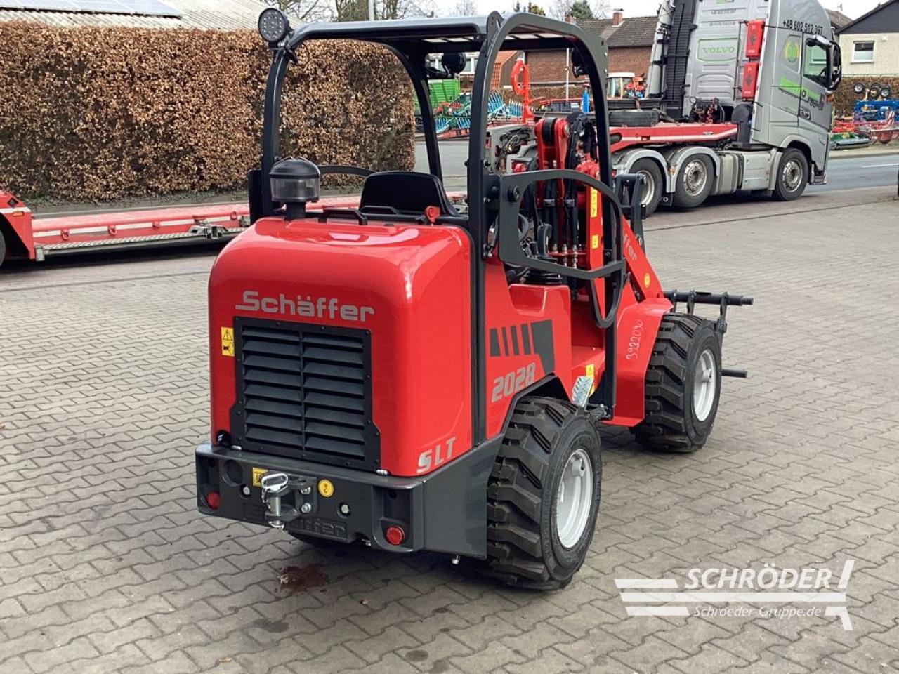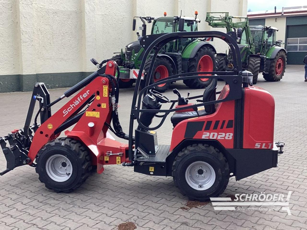 ROPS-Fahrerschutzdach, , Technische Daten Schäffer 2028 SLT:, Leistung: 18,5 kW (25 PS), Betriebsgewicht: 1.860 kg, Geschwindigkeit: 15 km/h, Länge mit Standardschaufel: 3.630 mm, Breite: 905 - 1.250 mm, Höhe: 1.900 mm, Wenderadius: 1.375 mm, Hubhöhe (WZ-Drehpunkt): 2.800 mm, Hubkraft: 1.500 kg, Kipplast gerade (Palettengabel): 787 - 939 kg, Kipplast gerade (Schaufel): 1.037 – 1.187 kg, , Serienausstattung Schäffer 2028 SLT:, 3-Zylinder-Dieselmotor Kubota D1105, hydrostatischer Allradantrieb mit automotiver Steuerung, Original Schäffer-Achsen, Kombi-Ölkühler, Trommelbremse als Betriebs- und Feststellbremse, wartungsfreies Knick-Pendelgelenk, Fahrerschutzdach, Rückhaltesystem, Fahrerschutzdach-Version: 1x LED-Arbeitsscheinwerfer vorne auf Schwinge, Kabinen-Version: 2x LED-Arbeitsscheinwerfer vorne, 1x hinten, Parallelführung, Zusatzsteuergerät mechanisch bedienbar, Arbeitshydraulik Serie 33 l/min, optional 42 l/min., einstellbare Lenksäule, Betriebsstundenzähler, Tank- und Temperaturanzeiger, Heckgewicht-Endplatte, Sitzkontaktschalter, Schnellwechselrahmen SWH mit hydraulischer Verriegelung, Zusatzausstattung:, , druckloser Rücklauf, Hydraulikanschlüsse in Ausführung Steckkupplungen, Zahnradpumpe verstärkt 14 ccm, Feststellraste mechanisch für Zusatzsteuergerät, LED-Arbeitsscheinwerfersatz 800 Lumen (2x vorne und 1x hinten), Batterie-Hauptschalter, Abschleppvorrichtung mit Bolzen und Zurrösen, Zyklon (Vorfilter für Luftreinigung), Bereifung: 26x12.00-12 SKD 5-Loch, ET -5, Aufnahmenrahmen Euro-WS, hydraulische Verriegelung