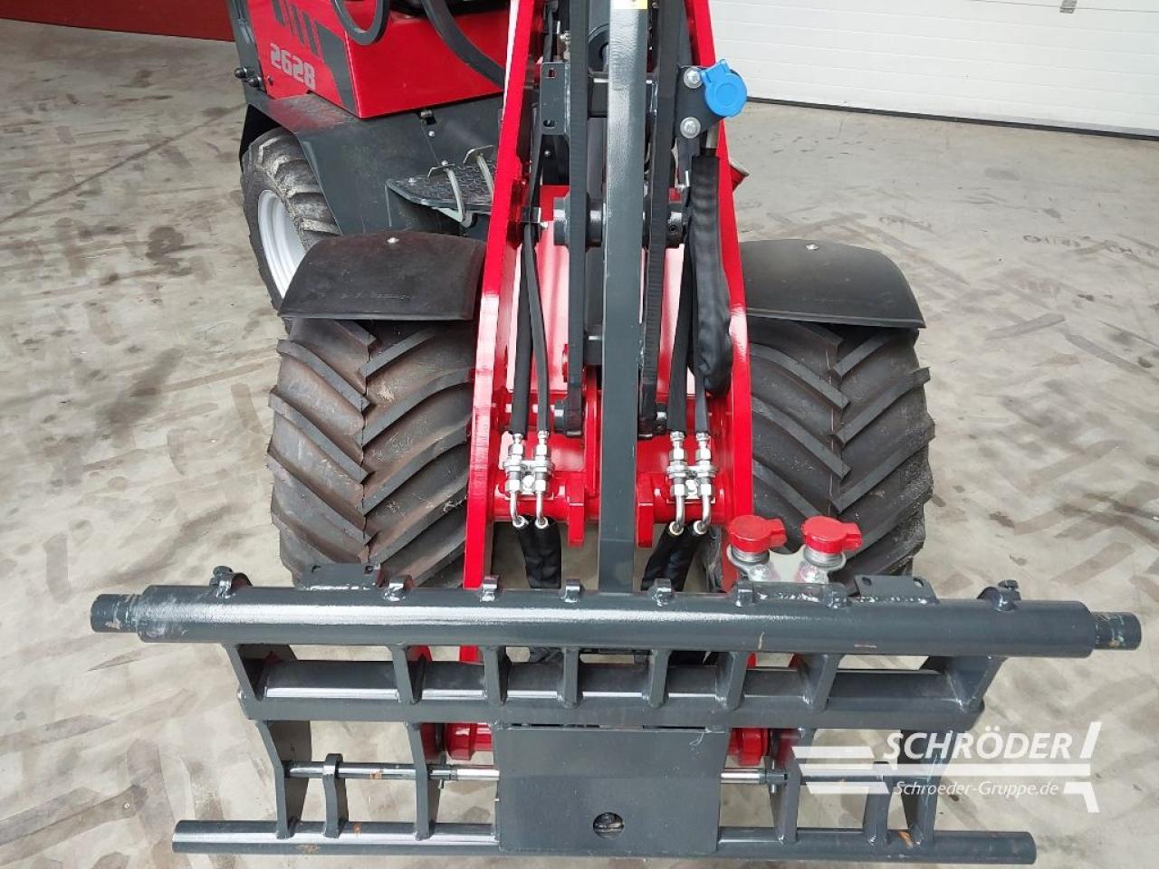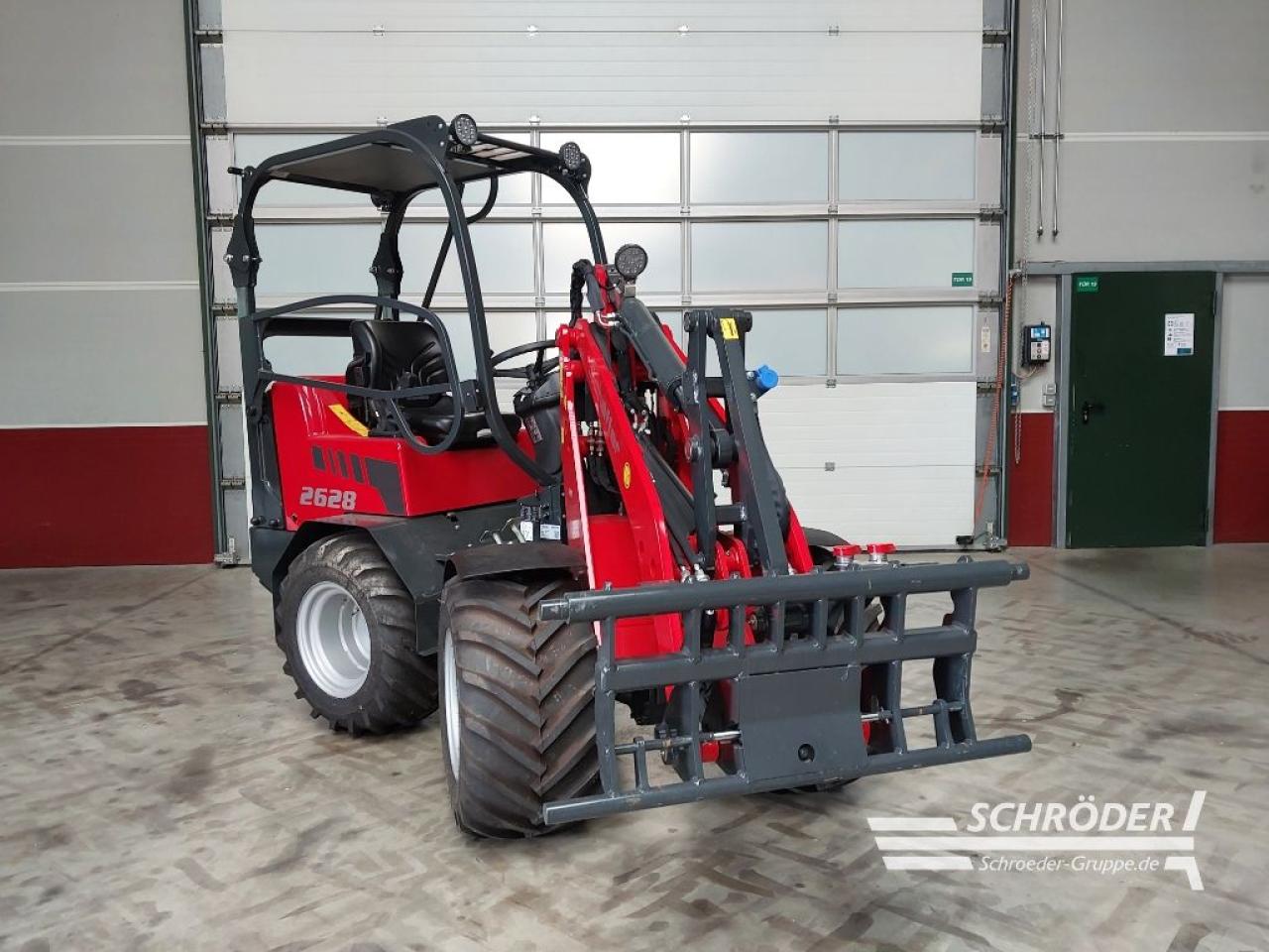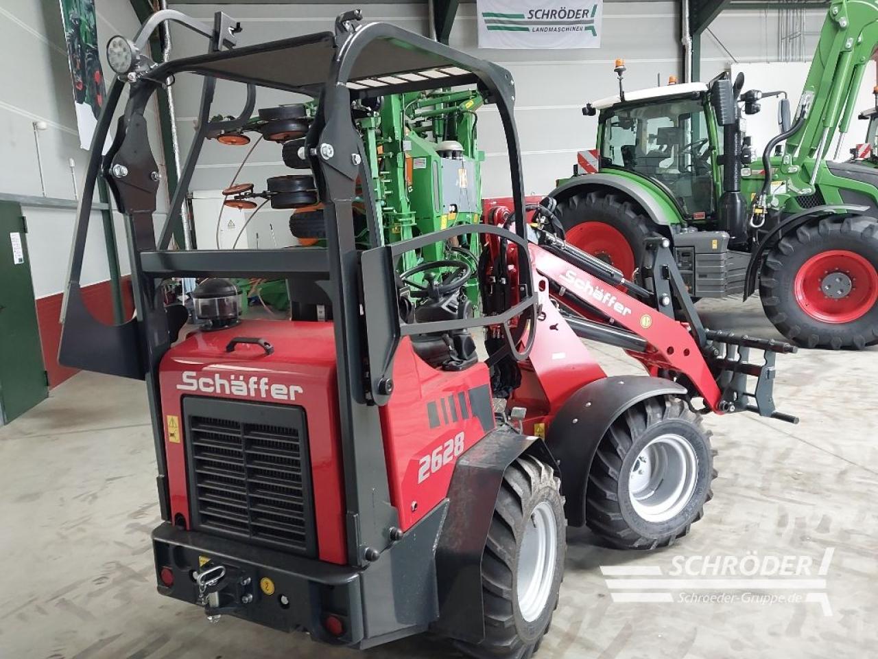 ROPS-Fahrerschutzdach, , Technische Daten Schäffer 2628:, Leistung: 18,5 kW (25 PS), Betriebsgewicht: 1.850 kg, Geschwindigkeit: 20 km/h, Länge mit Standardschaufel: 3.550 mm, Breite: 1.060 - 1.260 mm, Höhe mit Fahrerschutzdach: 2.200 mm, Wenderadius: 820 mm, Hubhöhe (WZ-Drehpunkt): 2.800 mm, optional: 3.110 mm, Hubkraft: 1.600 kg, Kipplast gerade (Palettengabel): 789 - 941 kg, Kipplast gerade (Schaufel): 1.041 – 1.191 kg, , Serienausstattung Schäffer 2628:, 3-Zylinder-Dieselmotor Kubota D1105, hydrostatischer Allradantrieb mit automotiver Steuerung, Hochdruck-Antrieb HD-plus, Original Schäffer-Achsen, Kombi-Ölkühler, Trommelbremse als Betriebs- und Feststellbremse, wartungsfreies Knick-Pendelgelenk, Fahrerschutzdach, Rückhaltesystem, 1x LED-Arbeitsscheinwerfer vorne auf Schwinge, Parallelführung, Zusatzsteuergerät mechanisch bedienbar, Arbeitshydraulik Serie 33 l/min, optional 42 l/min., einstellbare Lenksäule, Betriebsstundenzähler, Tank- und Temperaturanzeiger, Heckgewicht-Endplatte, Schnellwechselrahmen SWH mit hydraulischer Verriegelung, Zusatzausstattung:, , Hinterwagen mit verbreiterten Kotflügeln, Koffergewicht 73 kg, druckloser Rücklauf, Hydraulikanschlüsse in Ausführung Steckkupplungen, Zahnradpumpe verstärkt 14 ccm, LED-Arbeitsscheinwerfersatz 800 Lumen (2x vorne und 1x hinten), Batterie-Hauptschalter, Abschleppvorrichtung mit Bolzen und Zurrösen, Zyklon (Vorfilter für Luftreinigung), Bereifung: 31x15.5-15 AS 5-Loch, ET -37, Aufnahmenrahmen Euro-WS, hydraulische Verriegelung