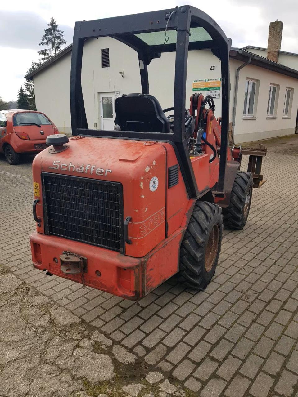gebrauchten Schäffer Hofladen 3036 mit Schaufel und Palettengabel