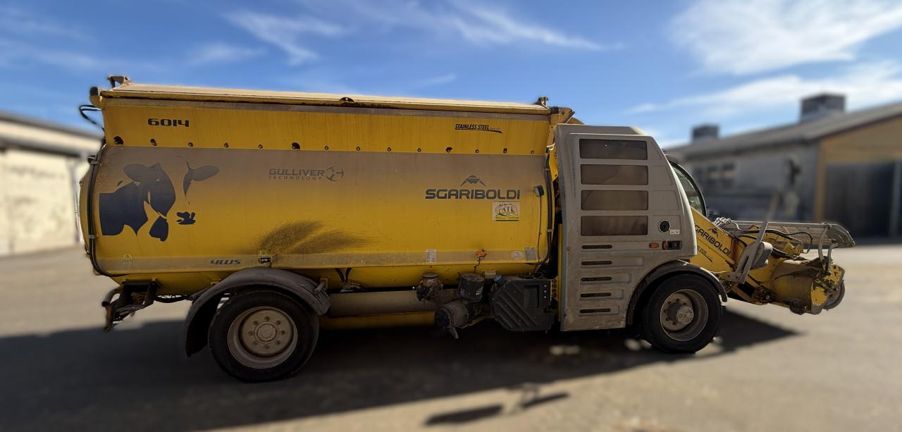 Beladestufe, Entnahmefräse, Wiegeeinrichtung, Paddel- / Freifallmischer, Austrag links, selbstfahrend