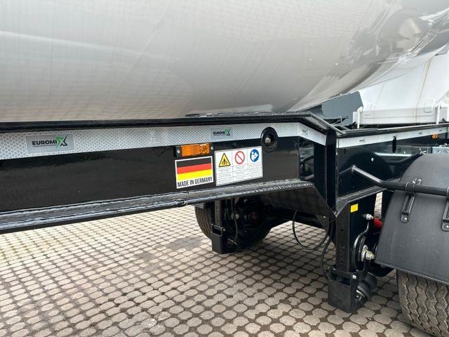 Model: EM 10 L, Nennvolumen 10m³ Fertigbeton, Mischtrommel in leichter Bauweise, Mischtrommel in leichter Ausführung aus dem Material HARDOX S450, Mischspiralen in leichter Ausführung aus dem Material HARDOX S500, Getriebe Fabrikat ZF P5300, Hydraulikpumpe Fabrikat Bosch Rexroth, Hydraulikmotor Fabrikat Bosch Rexroth, Ölkühlanlage integriert, Mischsteuerung mechanisch und Start Stopp elektrisch, Druckluftwasseranlage, Wasseranschluss am Standpodest mit Schlauchleitung, Wasserfüllleitung, einseitig mit C-Kupplung, Mischtrommel mit einer Serviceklappe, Steigleiter mit Standpodest, Gummiaufsatz am Einfülltrichter, Schwenkbare, einarmige Auslaufschurre aus Stahl, Verschleißbleche in Einfülltrichter, Auslaufschale und Schwenkschnurre, Trommelarretierung zur Sicherung der Trommel bei Wartungsarbeiten, Polyurethangrundierung, Gewicht ca. 3.650 kg, Abweichungen +/- 5%, mit Not-Aus Funktion gemäß EU-Sicherheitstechnik, otflügel aus Stahl über den Hinterachsen, 2x Verlängerungsrinnen aus Stahl oder Kunststoff, Wasseranlage, Wassertank 500l (Druckluft), Wassertank Stahl, Absperrhahn unterhalb des Wassertanks montiert in der Füllleitung, Wasseranschluss „C“-Kupplung,, Bedienung & Elektrik, Mischerbedienung – mechanisch hinten, Start-Stopp-Anlage (bei EDC), Geometrisches Volumen 17361 L, Volumen Wassertank 11121 L, Neigung des Tanks 11.3, Länge 7075 mm, Breite 2300 mm, Höhe 2748 mm