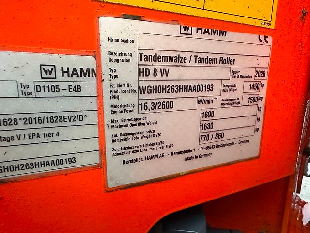 Baujahr 2020, 175 h, Betriebsgewicht 1590 kg, Motorleistung 16,3 kW, Kubota Motor, Arbeitsscheinwerfer, ROPS / Schutzbügel, Wasserberieselung, Bandagenbreite 800 mm, Doppelvibration