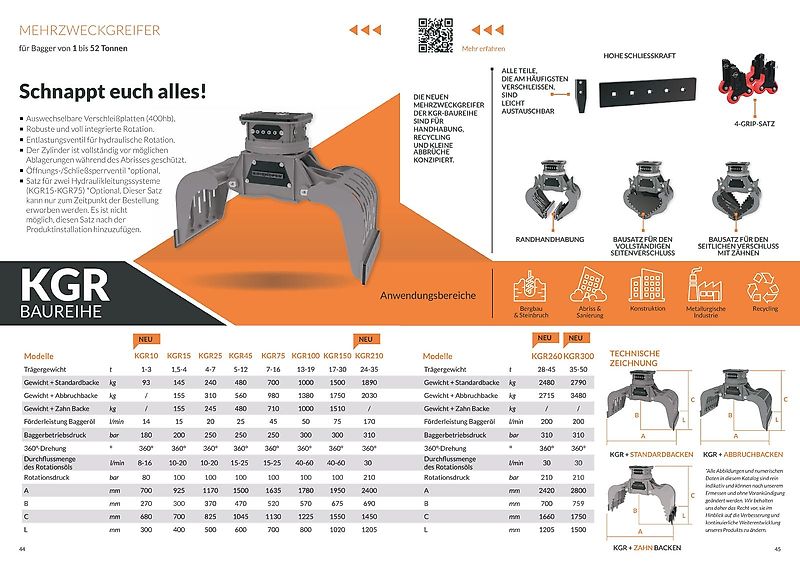 Wir haben weitere Größen und Ausführungen an Greifern, sowie verschiedene Anbauwerkzeuge wie z.B. Erdbohrer, Hydraulikhämmer, Abbruchzangen, Anbauverdichter, Sieblöffel, Brecherlöffel, uvm. stetig auf Lager.