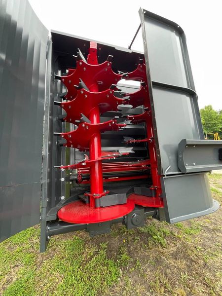 Dung-/ Kompoststreuer ROD-12 für organische Dünger wie Mist, Kompost, separierte Gärreste, Kalk oder Trester. Technisch zulässige Gesamtmasse 18200kg, Technisch zulässige Nutzlast 14000 kg. Inhalt 12 m3, Achse ADR, Zugöse Ø40mm, Bereifung 650/65-30,5 (Traglast: 8680 kg/30km/h), 2-Kreis-Druckluftbremse mit Handregler WABCO,Kratzbodenbreite 1360 mm, Schritt 240mm - hydr. Antrieb. Vertikale Streuwalzen -2 Stk., Antrieb PTO 540/1000 U/min. Regulierbarer, hydraulischer Vorschub mit Sicherheitsabschaltungen, Kardanwelle. Hydraulisch gefederte Deichsel, hydr. Stützfuß. Aufstiegsleiter, Werkzeugkasten. Aufbau L*B*H - 5600(4855) *2150*1450 mm, Bodenplatte - 4 mm, Bordwände - 3 mm, Gesamtabmessungen L*B*H - 8165*2950*3200 mm. Aufbau RAL 6003, Heckklappe und Rahmen RAL 7016.