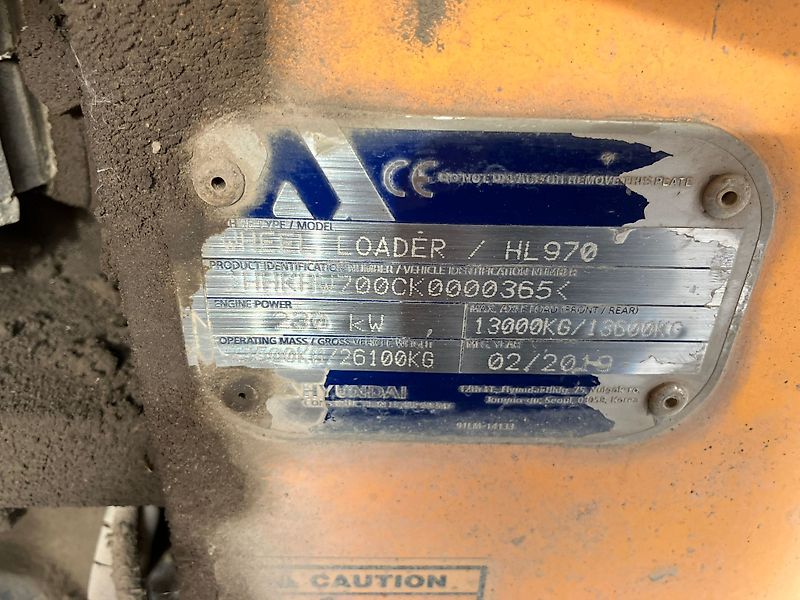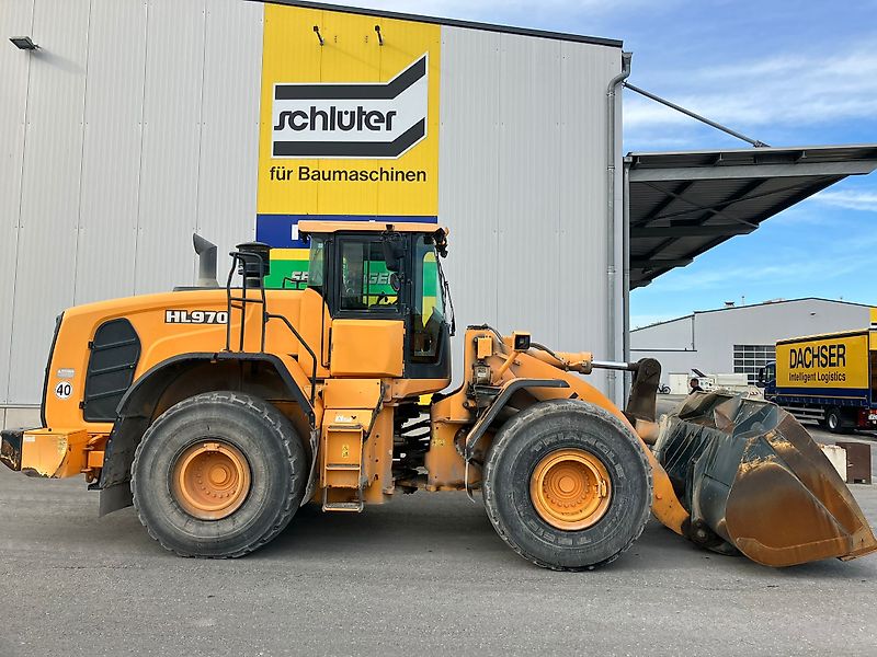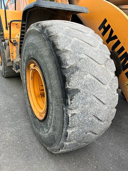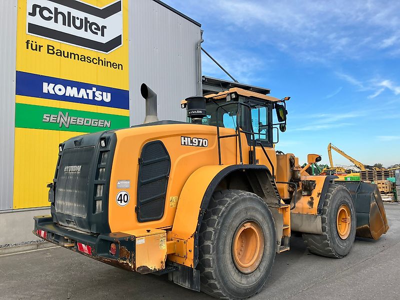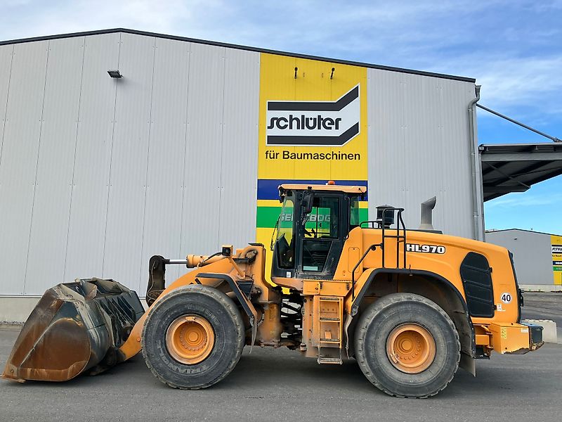 RADLADER HYUNDAI HL 970 HD 5-ZYLINDER SCANIA-MOTOR, 230 KW BETRIEBSGEWICHT: CA 26,1 TO. SICHERHEITS-FAHRERHAUS (ROPS) 40 KM/H VERSION STANDARD HUBGERÜST MULTIFUNKTIONSHEBEL AUFSTIEGE RADABDECKUNG ARBEITSBELEUCHTUNG RADIO BEREIFUNG 26.5 R25 TBS16 4,6 CBM LADESCHAUFEL, 3.100 MM