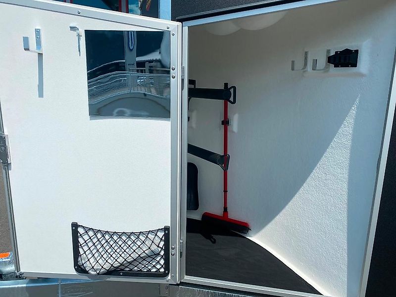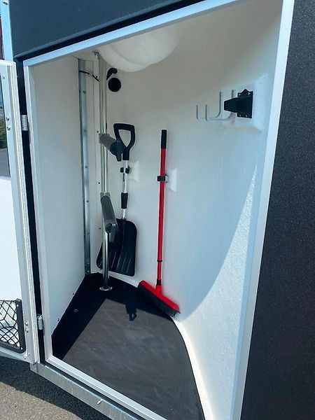1x Sattelkiste m.ausziehbarem Sattelhalter u. Besen/Schaufel/Netz/Spiegel