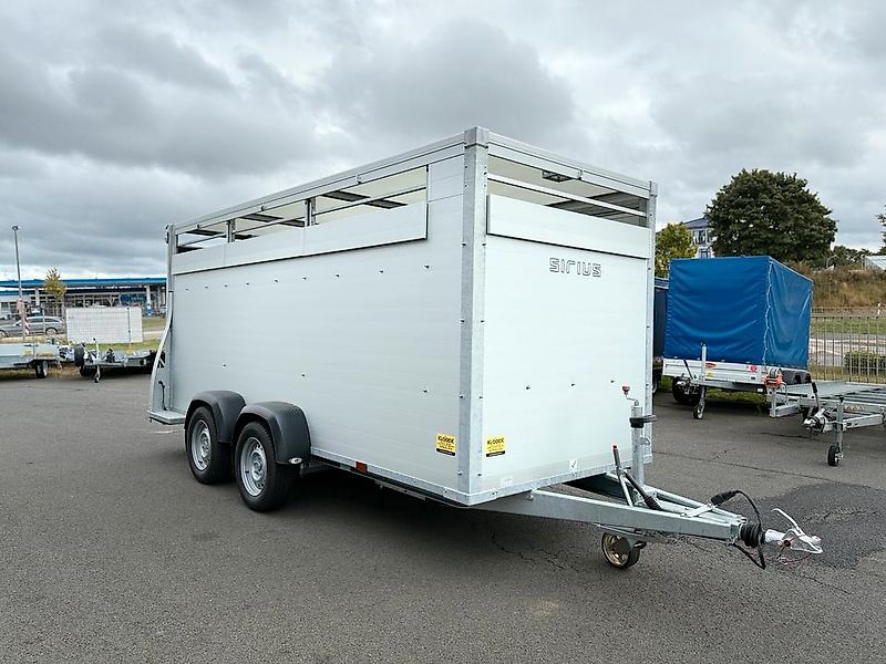 Hier bieten wir Ihnen einen neuen Sirius Viehanhänger an in 3500 kg inkl. LED, Al-Ko Fahrwerk, Alu-Boden und Wände.