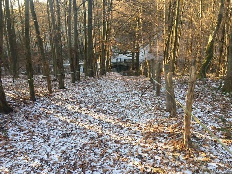Gesamtgrundstücksgröße 15.700 m², davon 14.400 m² Weide und 1.300 m² Wald mit hochwertigem Aufwuchs.