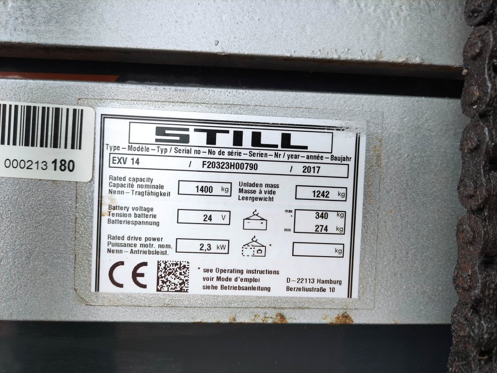Ein elektronischer Antrieb sorgt für eine leise, lokal emissionsfreie Fortbewegung. Die Motoren gelten als durchzugsstärker als klassische Verbrenner. Die Nutzungsdauer liegt bei 1772 Stunden . Der Masttyp ist Triplex. Dieses Fahrzeug ist kein Spezialgerät. Die Tragkraft beträgt 1400 kg. Der optische Zustand ist mit normal zu bewerten. Der technische Zustand ist mit normal zu bewerten.