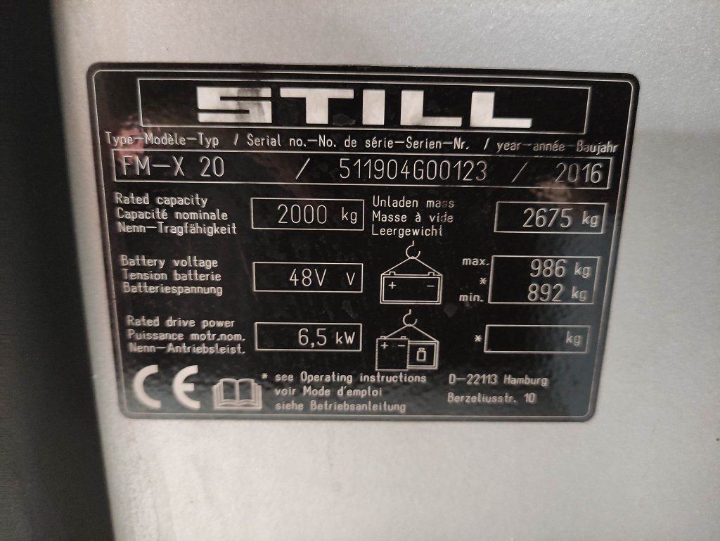 Ein elektronischer Antrieb sorgt für eine leise, lokal emissionsfreie Fortbewegung. Die Motoren gelten als durchzugsstärker als klassische Verbrenner. Die Nutzungsdauer liegt bei 2896 Stunden . Der Masttyp ist Triplex. Dieses Fahrzeug ist kein Spezialgerät. Die Tragkraft beträgt 2000 kg. Der optische Zustand ist mit normal zu bewerten. Der technische Zustand ist mit normal zu bewerten.