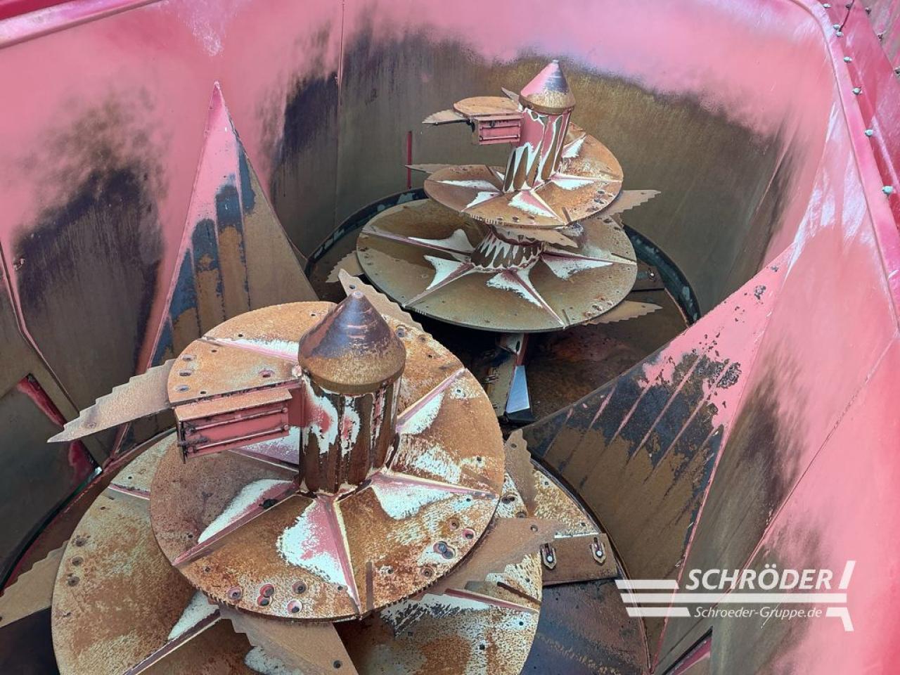 Ohne Betriebserlaubnis, Austragrutsche seitlich vorne rechts mechanisch verstellbar, Austragrutsche seitlich vorne links mechanisch verstellbar, Einzelachse mit hydr. Bremse 6 km/h, Spur 1.720 mm, Bereifung kpl. 435/50 R19.5 160J 10-Loch, Achsposition hinten Standard, Deichsel Obenanhängung mit geflanschter, verkröpfter Ringzugöse 40 mm, Stützfuß mechanisch, Stufen-Mischschnecken 20 mm "heavy-duty", Messersatz Standard (16x Messer kurz), Gegenschneiden mechanisch, 2x T-Koaxialgetriebe 26 U/min, Antrieb mit Schaltgetriebe Übersetzung 1/1 und 1,8/1, Bedienung Schaltgetriebe elektrisch (bei E-Bedienung), Bedienung über Elektrohydraulik 2 Funktionen, Bedienung E-Control bis 4 Funktionen, Programmierbare Wiegeeinrichtung PTM HL 50, Gelenkwelle Walterscheid - einseitig Weitwinkel, Magnetsystem für vordere Mischschnecke, Magnetsystem für hintere Mischschnecke, Kamera hinten und Bildschirm auf dem Schlepper