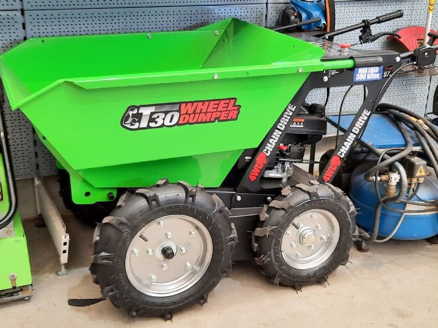 | Anbaugeräte Beschreibung | Mulden Kipper Marke: Wheel Dumper Typ: T30 4WD Chain Drive Baujahr: 2022 Motor: Benzin Motorleistung: 3,4 kW Kraftstofftyp: Benzin Betriebsgewicht: 156 kg Ladekapazität: 300 kg Beschreibung: 4-Rad Antrieb |