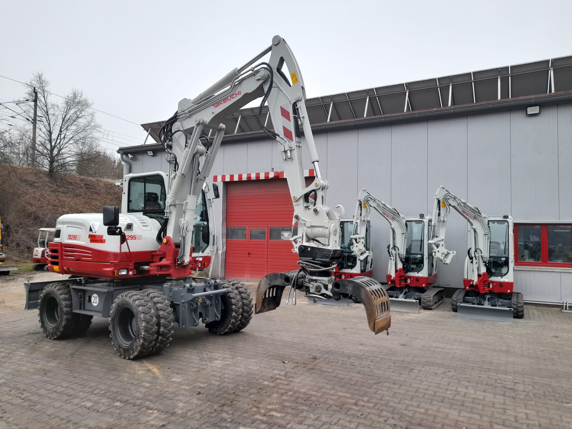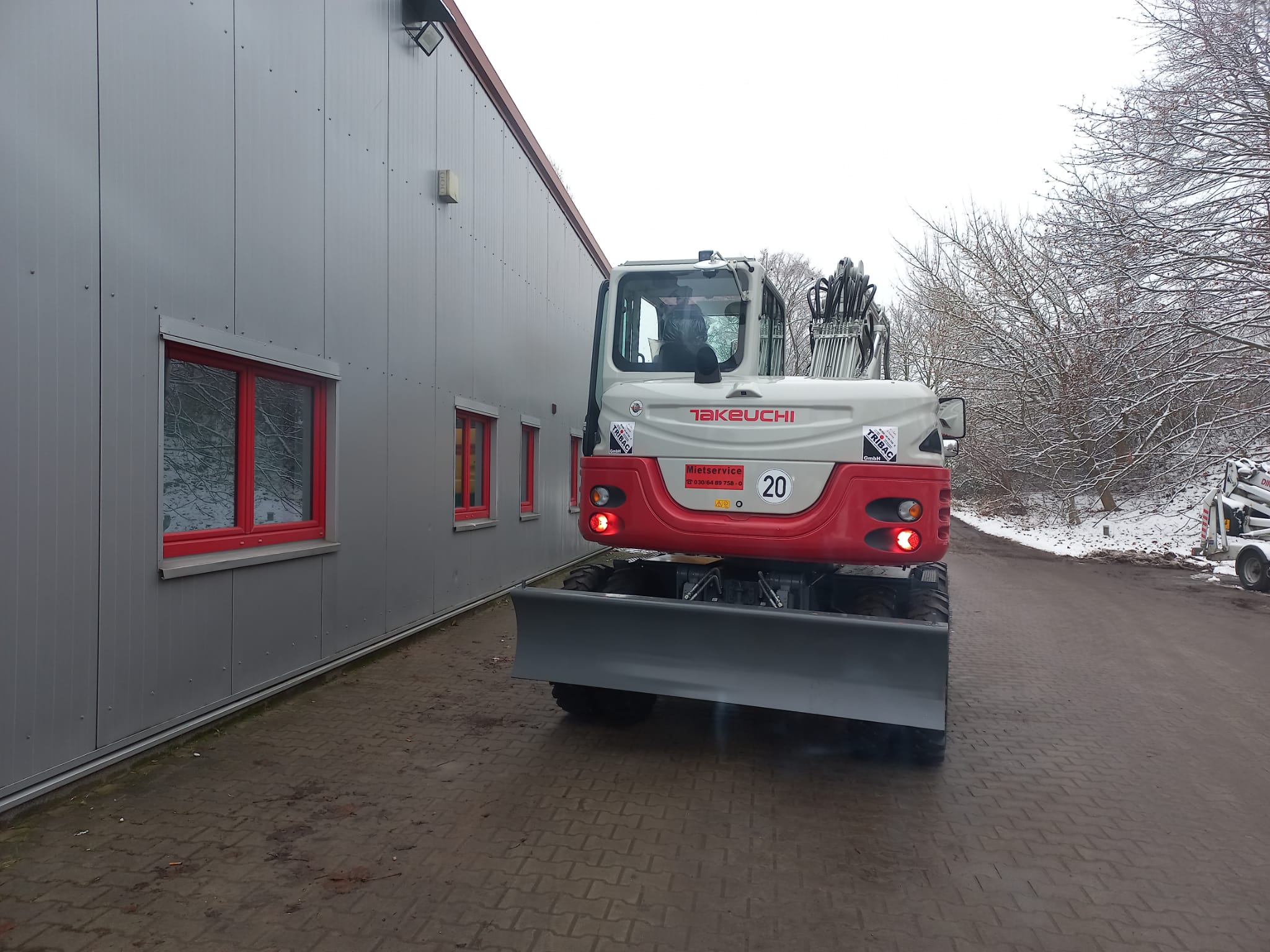 V4, mit hydraulischem Schnellwechsel HS08 und Powertilt, mit elektr. Powertiltumschaltung, StVZO-Zulassung, Dieselpartikelfilter (DPF), inklusive starre Grabenräumwanne und Tieflöffel 800mm mit Zähnen