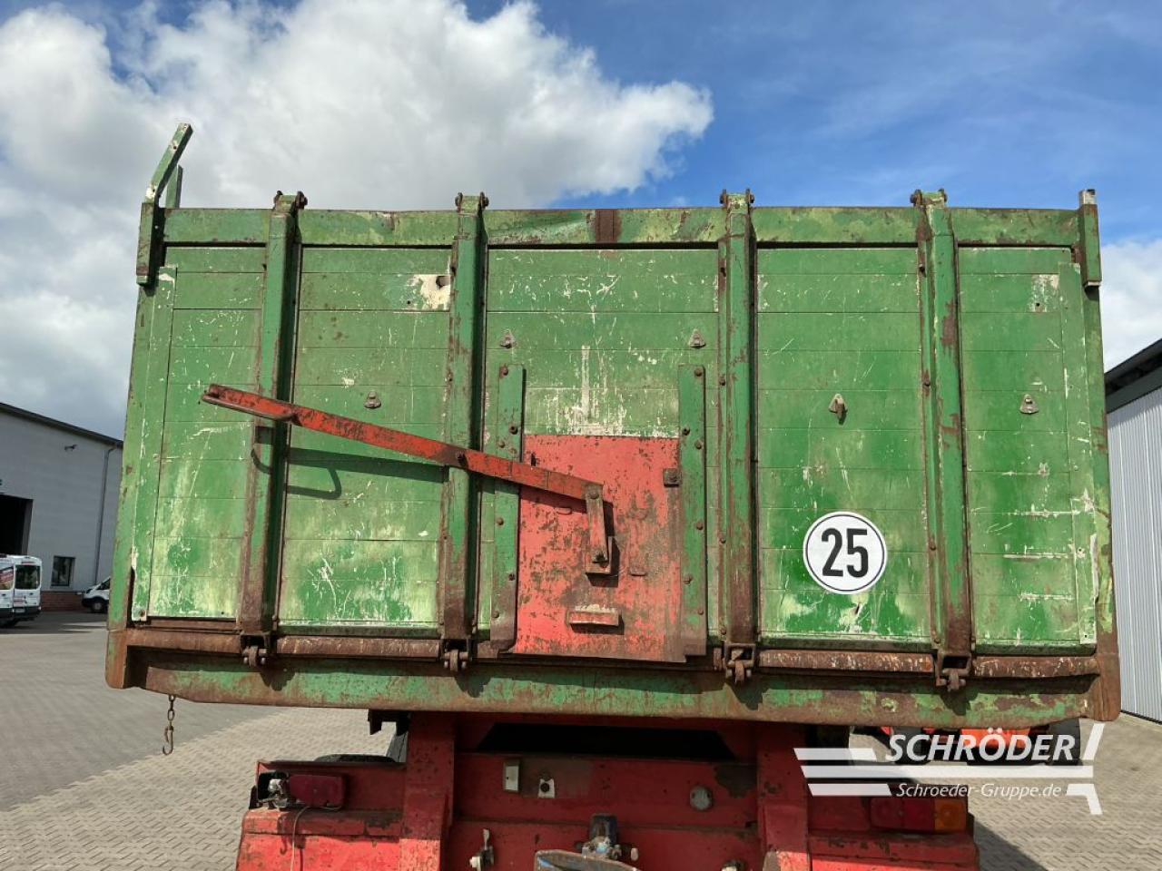 Druckluftanlage 1 2 Kreis Tridem Achse 3 ADR Bremsachsen Bremstrommel 406 x 120 mm Achsvierkant 130 x 130 mm Parabelfederung 100 mm breit mit Überlastsicherung auf der Hinterachse ALB Regler Dreiseitenkipphydraulik mit 5 Stufen Hydraulikzylinder Kasteninnenmaß 7 880 mm x 2 420 mm Grüne Rollplane aufgerollt rechts liegend Hydr Bordwandöffnung Bordwä ...