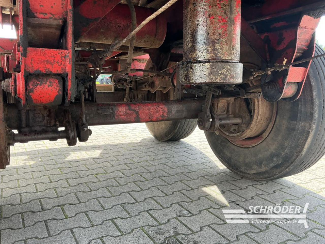 Serienausstattung Bereifung 385 65 R22 5 werkserneuert auf Mittelstegfelgen 80 km h ADR Schrägrollenlager Achsen 11 3 t Achslast 105 km h 2 050 mm Spurbreite ohne ABS bis 60 km h Radbremse 406 x 120 mm 130 mm Achsvierkant 18 t Parabelfederung 2 lagig 100 mm breit zugelassen bis 105 km h Überlastschutz für hintere Parabelfedern Drehschemellenkung mi ...
